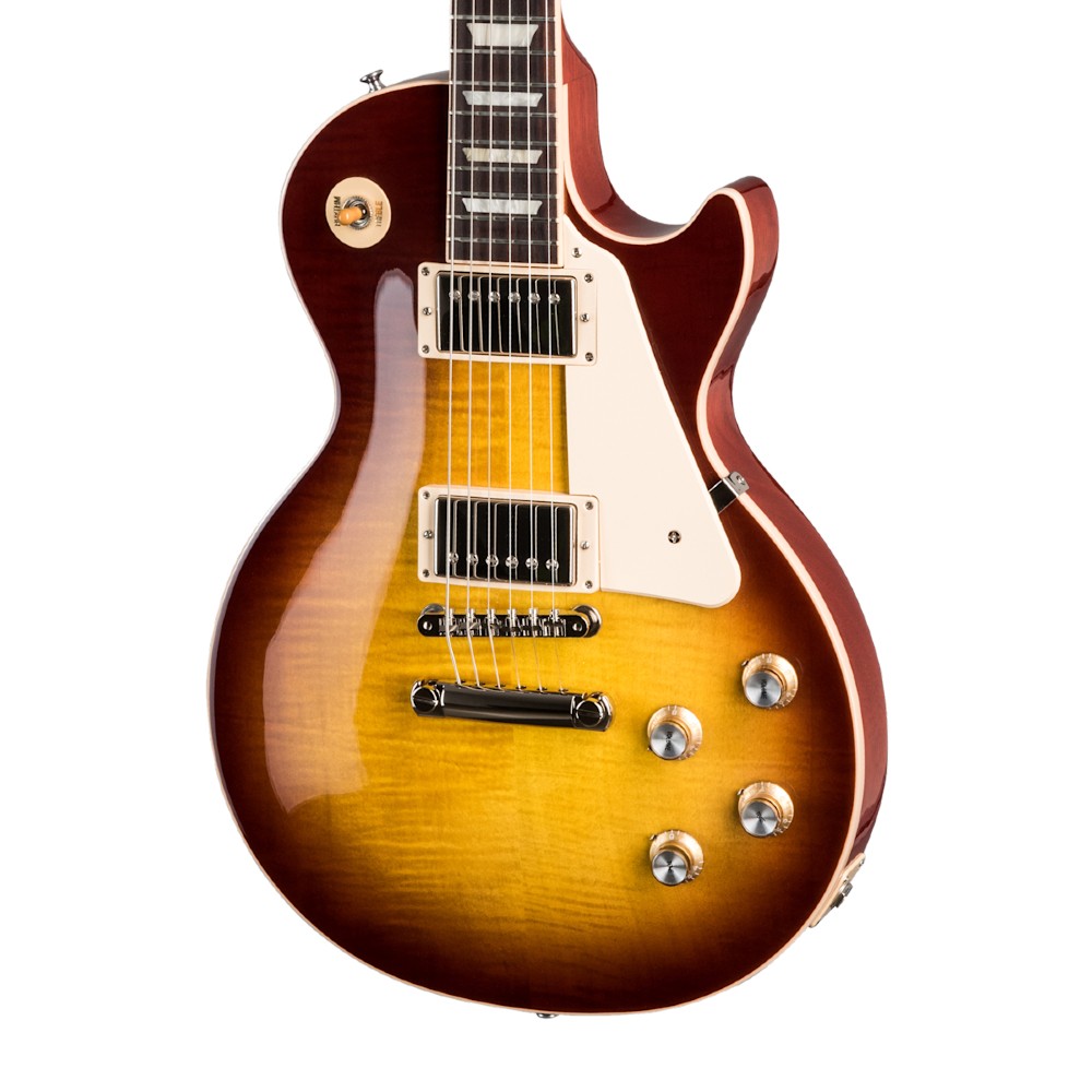 - Trosmerni prekidač za izbor pikapa vam omogućava da koristite bilo koji pikap pojedinačno ili da ih kombinujete, a pojedinačne kontrole vam omogućavaju da mešate pikape u bilo kom odnosu koji želite. Kontrole su prekrivene zlatnim Top Hat dugmićima sa srebrnim reflektorima. baš kao i klasični modeli Les Paul Standard iz ranih 60-ih.
