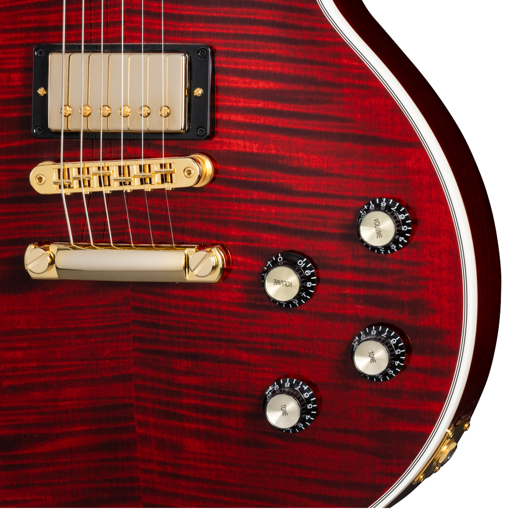 - Gornja ploča od javora AAA oblika (obični javor na ekskluzivnom modelu Gibson sa 3 pikapa) kruniše telo od mahagonija sa ultramodernim olakšanjem težine za upečatljivu vizuelnu privlačnost, uz lakši osećaj.