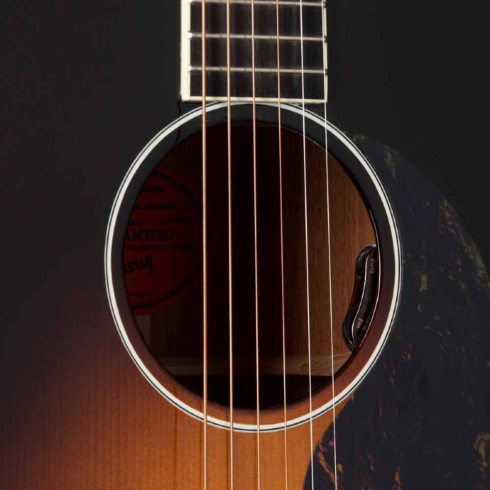 Kontrole jačine zvuka i tona ugrađene LR Baggs® VTC elektronike su postavljene na dnu zvučnog otvora, prema Natanijelovim željama; LR Baggs pickup čini Nathaniel Rateliff LG-2 Western spremnim za scenu, direktno iz priložene tvrde kutije.