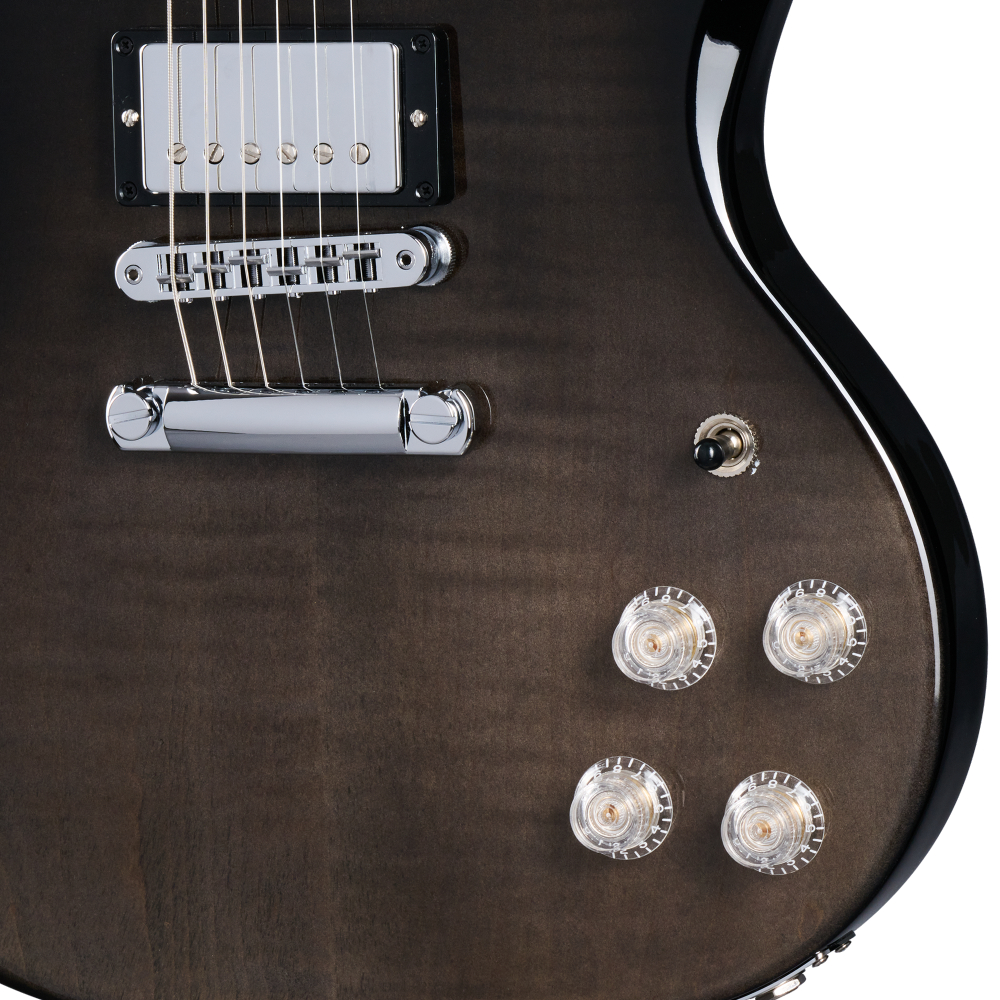 - Oba dugmeta za jačinu zvuka uključuju potisne/povucite kontrolne tačke, nudeći izbor između punoće zvuka Gibson humbucker™ i jednostrukog zvuka koji podseća na klasični glas P-90. Rezultat je instrument koji udobno pokriva širok spektar stilova - od opuštenog bluza i R&B-a do agresivnog roka i metala.