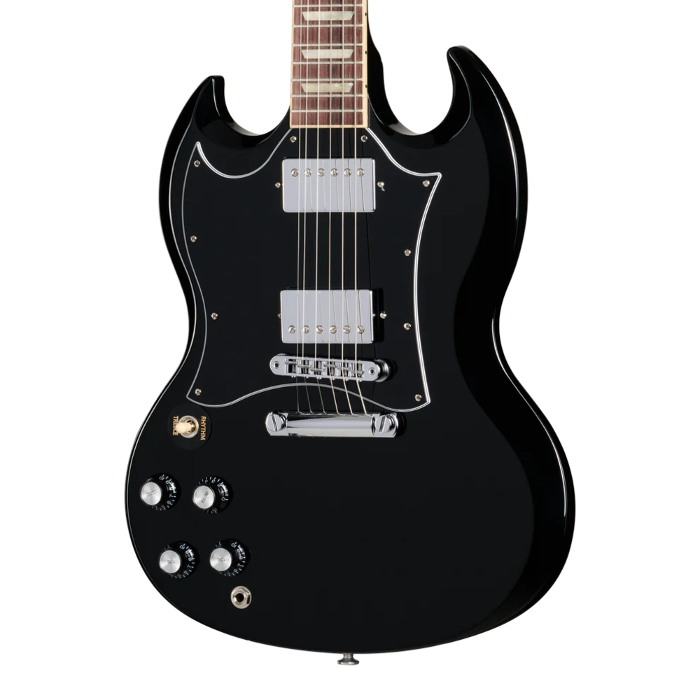 Gibson SG Standard Ebony električna gitara poseduje telo od mahagonija i rounded profil mmahagoni vrat sa rosewood fingerboard-om. Sa crnim open-coil 490R i 490T Alnico II magnetima i Grover Rotomatic tunerima, ova gitara je pravi instrument za svakog gitaristu.