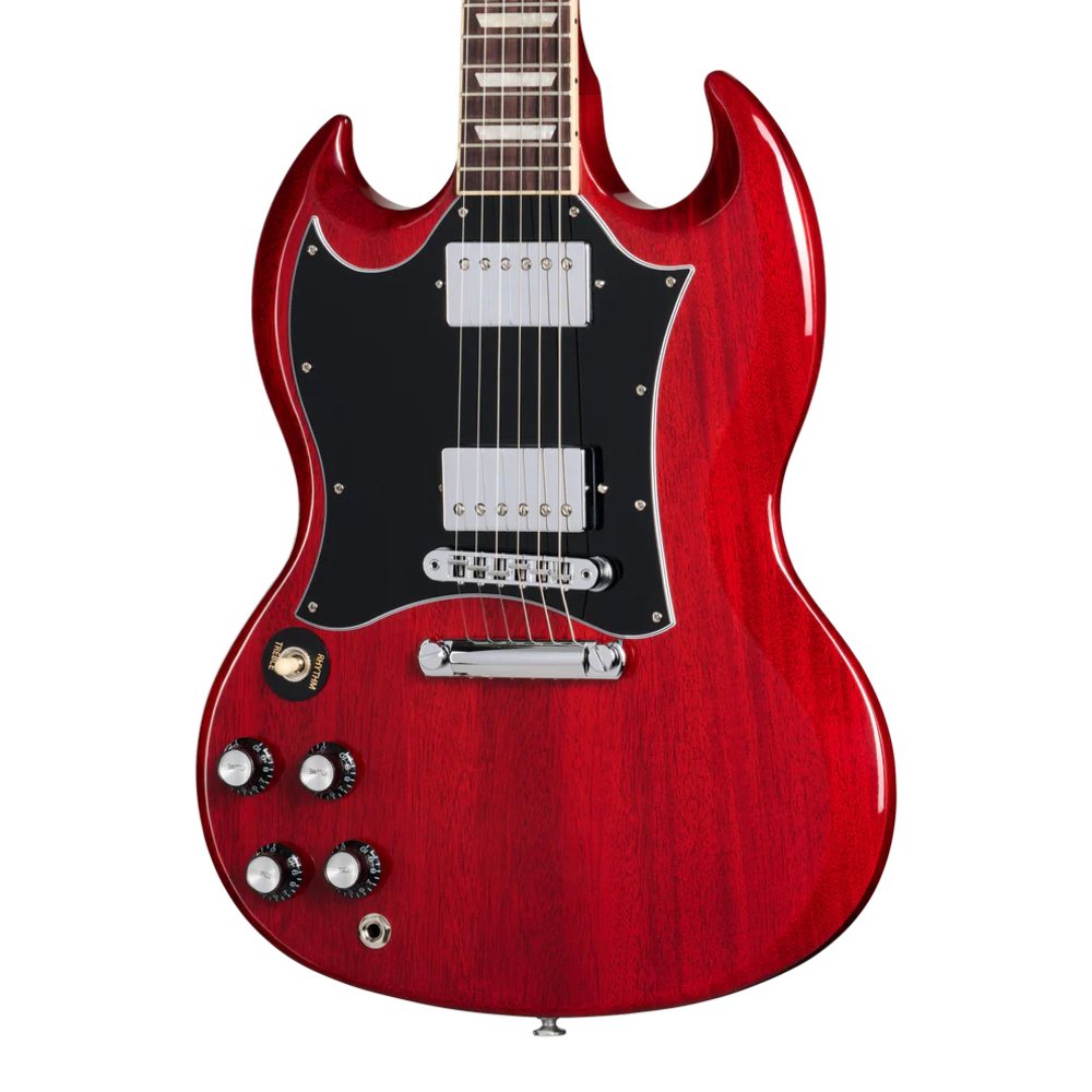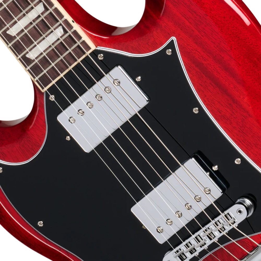 Gibson SG Standard Heritage Cherry poseduje telo od mahagonija i rounded profil mmahagoni vrat sa rosewood fingerboard-om. Sa crnim open-coil 490R i 490T Alnico II magnetima i Grover Rotomatic tunerima, ova gitara je pravi instrument za svakog gitaristu.