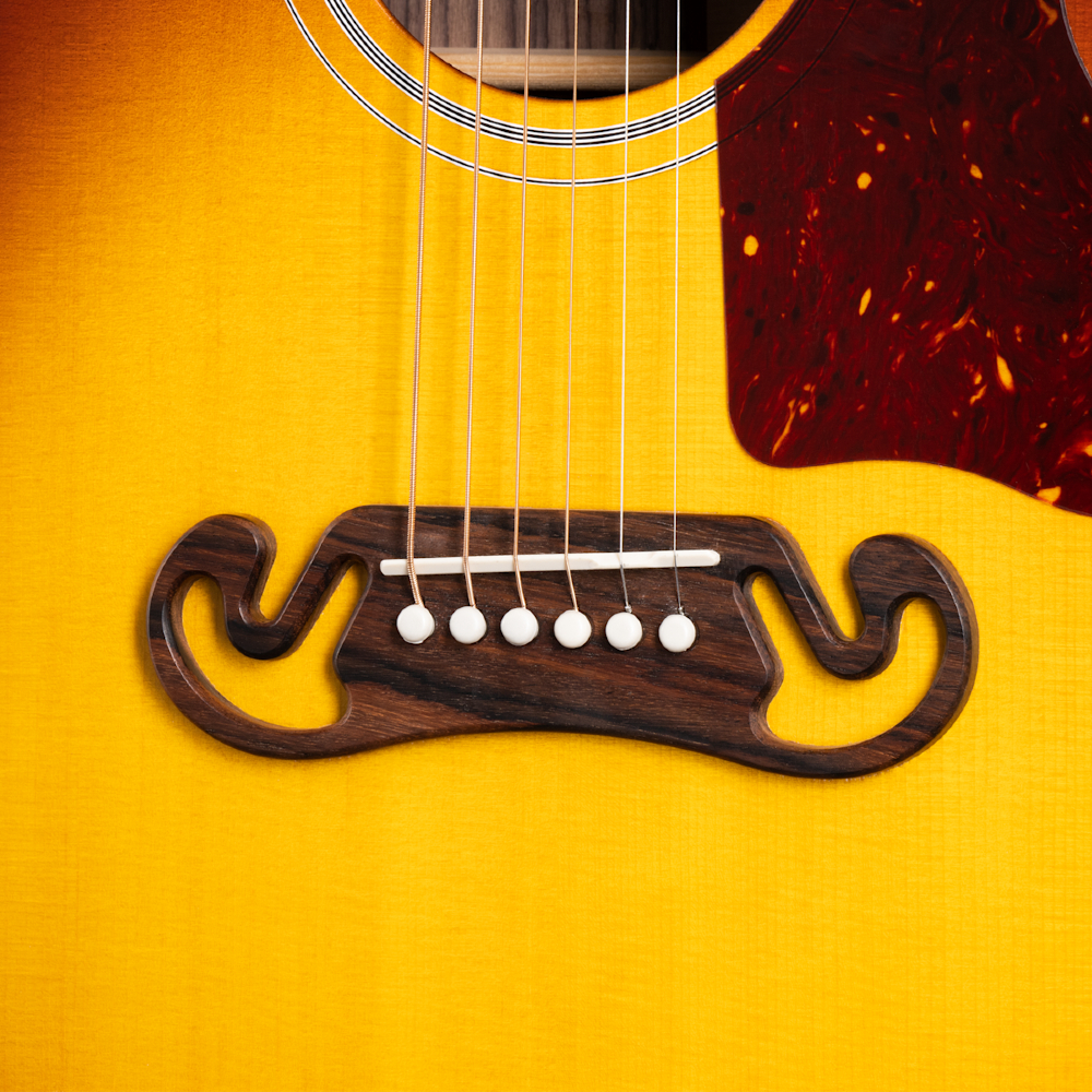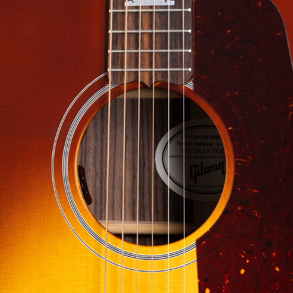 Ručno napravljena od sitkanske smrče i palisandrovog drveta, ova SJ-200 Studio Rosewood će sigurno obradovati oči i uši. Satenski nitrocelulozni lak završna obrada daje joj izgled i osećaj dugogodišnjeg muzičkog pratioca.