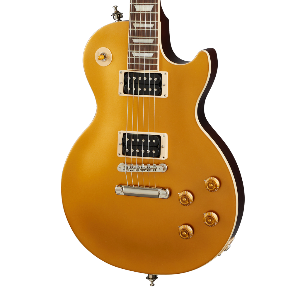 - Sleš "Victoria" Les Paul™ Standard Goldtop ima javorovu ploču, čvrsto telo od mahagonija sa tamnom završnom obradom na poleđini i Slešove lične detalje, uključujući profil vrata u obliku slova C, Gibson Custom BurstBucker™ Alnico 2 pikape, hardver usklađen u boji, ručno ožičenu elektroniku sa Orange Drop® kondenzatorima i tvrdo kućište u vintage stilu.
