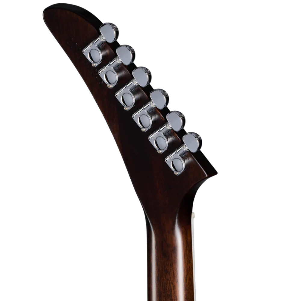 Novi Gibson Victory Figured Top je kreiran kao odgovor na zahteve svirača za povratak ovog kultnog favorita iz 80-ih. Napravljen za neograničeno samoizražavanje, nosi DNK originalnih verzija sa poboljšanim karakteristikama kao što su prefinjene konture tela, poboljšana težina i balans, i Explorer™ glava gitare. Viktori Figured Top ima skalu dužine 25,5 inča, a vrat od mahagonija ima prag od ebanovine sa složenim radijusom za poboljšanu sviranje, SlimTaper™ profil i 24 srednja džambo praga. Telo od mahagonija ima AA figuriranu javorovu kapu, Tune-O-Matic™ most, Stop Bar tail i sjajnu nitroceluloznu lakiranu završnu obradu. Veoma fleksibilna elektronika uključuje dva Tribute humbucker™ pikapa iz 80-ih, ožičena za push/pull kontrole jačine zvuka i tona za razdvajanje zavojnica i izbor unutrašnje/spoljašnje zavojnice kada su zavojnice razdvojene, što, zajedno sa trosmernim prekidačem za izbor pikapa, pruža širok spektar tonskih opcija za humbucking i single coil sa minimalnim brojem kontrola.