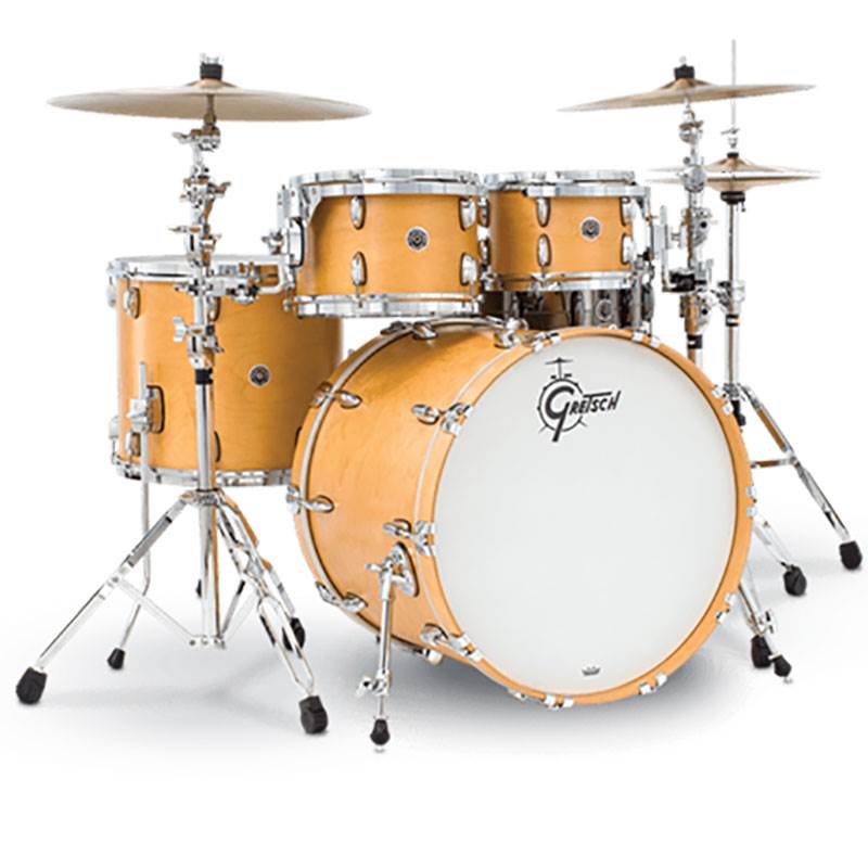 - Toms: Coated Gretsch Permatone by Remo Batter, Clear Gretsch Permatone by Remo Batter