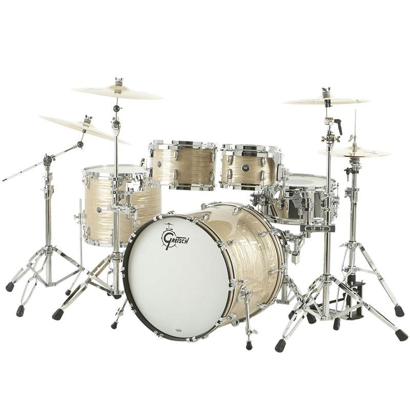 - Snare: Coated Gretsch Permatone by Remo Batter, Clear Gretsch Permatone by Remo Batter