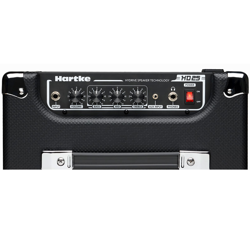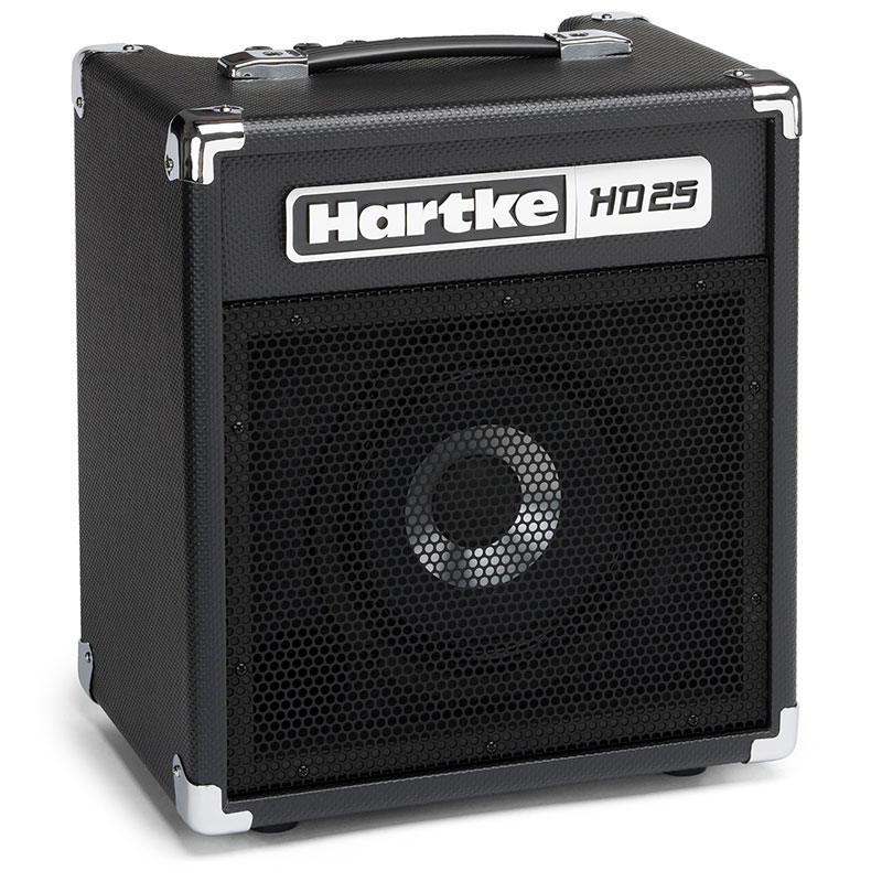 Hartke HD 25 bas pojačalo sa patentiranim HiDrive zvučnicima je idealno za manje nastupe, prostorije za probe kao i za kućno vežbanje. HD 25 takođe izražava posvećenost Hartkea da proizvodi visokokvalitetna bas pojačala izuzetne izdržljivosti. HiDrive Dizajn - HD25 (25 vati, 8 " zvučnik) koristi patentiranu Hartke tehnologiju zvučnika HiDrive koja nudi pažljivo izrađen hibridni (membrana načinjene od papira i aluminijuma) konusni bas zvučnik. HiDrive dizajn proizvodi ozbiljan ton koji je idealan za basiste svih žanrova i stilova. Hartke HD 25 bas pojačalo poseduje Volume, Bass, Mid i Treble kontrole. Takođe pojačalo poseduje 3,5 mm Aux ulaz za povezivanje sa telefonom ili MP3 plejerom, kao i 6,5 mm ulaz za slušalice. HD25 poseduje ugrađeni limiter koji obezbeđuje konstantan i siguran rad pojačala.