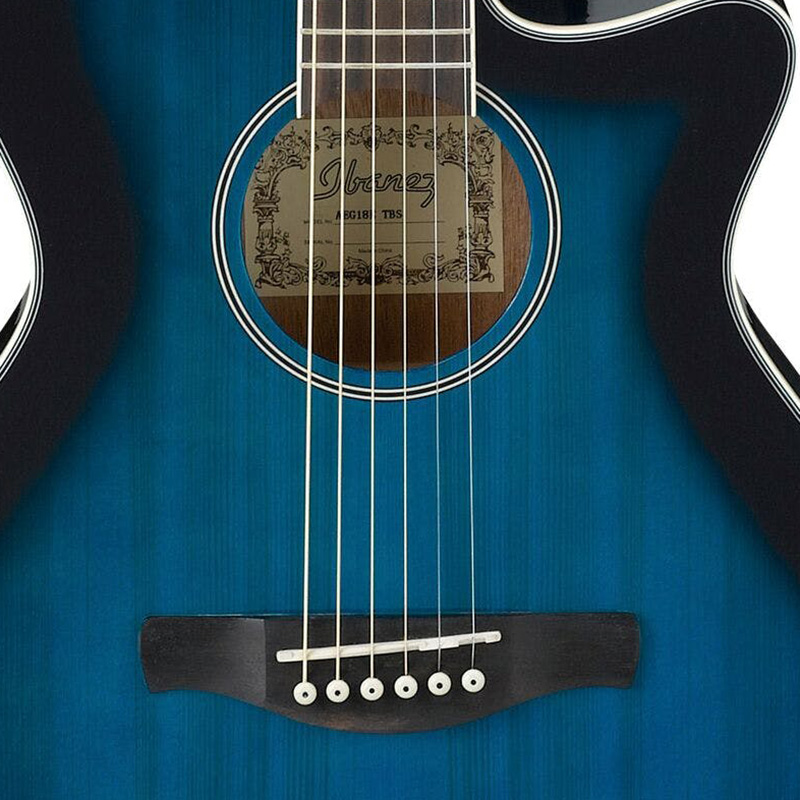 Ibanez AEG8E-TBS akustična gitara predstavlja pravi izbor za duge nastupe. Single-cut trup umanjene debljine pruža izuzetnu udobnost, a ipak pun, bogat ton. Gornja ploča od smreke, stranice i leđa od sapele drveta, saten finiš. Gitare nove serije dodatno su oplemenjene purpleheart kobilicom i kotnom pločom. Prepoznatljivi Ibanez profil vrata, jednako svirljiv pri hvatanju akorda, ili soliranju. Ugrađena AEQ-2T ozvuka, profesionalnih performansi, snalazi se u svim situacijama. Odlično izbalansiran, moderan instrument, vrhunskog zvuka. Tipičan Ibanez odnos uloženog i dobijenog, bez prave konkurencije na tržištu.