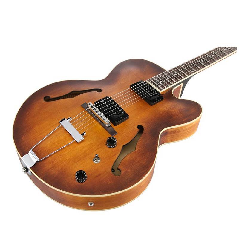 Ibanez AF55-TF elektricna gitara pripada popularnoj Artcore seriji Ibaneza predstavljenoj 2002. godine. Korpus od lipe srednje veličine nudi odličan kompromis između bogatog, nosivog tona, i umerenih gabarita i male mase, pogodnih za duže svirke. Udoban set-in vrat sa standardnim C profilom odgovara najširem krugu muzičara. Provereni Ibanez Infinity humbucker magneti snalaze se u svakoj situaciji, i daju veliku fleksibilnost ovom instrumentu. Jasan, dobro definisan ton bez problema će se uklopiti i u jazz standarde, i u country, blues, ili rock scenario. U prelepom satenskom Tobacco Flat finišu. Odličan izbor za sve kojima je potreban svestran, kvalitetan i upotrebljiv hollow body instrument po pristupačnoj ceni.