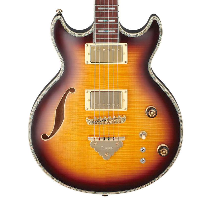 Ibanez AR520HFM-VLS električna gitara ima lučni gornji deo od plamenog javora. Na telu od javora sa ƒ-otvorom uparen je javorov vrat sa 22 praga.
