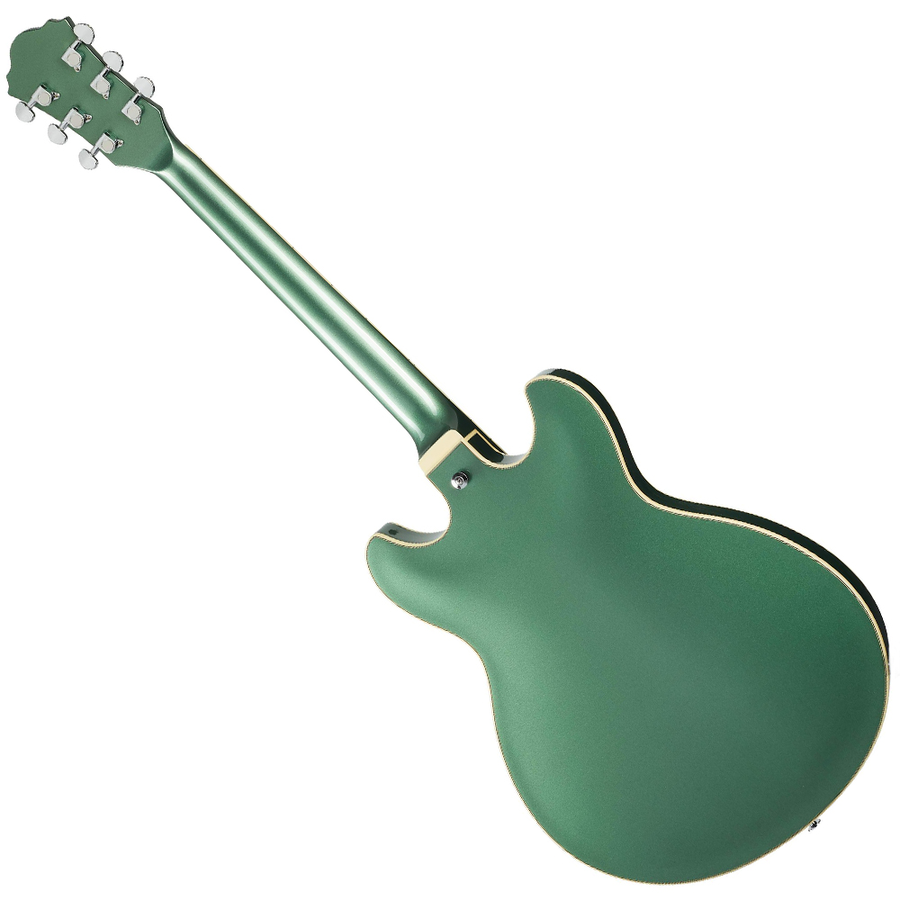 - Standardne AS konture trupa, sa trostrukom bordurom, i prepoznatljivim zvučnim otvorima. Set-in vrat umerene debljine, sa udobnim C profilom, 22 medium praga, i skalom od 628 mm. Odličan osnovni balans daje instrument koji ne zamara tokom dužih sesija, ni u studiju, ni na bini. Veoma bogat, nosiv ton, sa baršunastim niskim spektrom, i čvrstom definicijom u višim opsezima. Ugrađeni par slavnih Classic Elite humbucker magneta nebrojeno puta se dokazao među muzičarima širom sveta. Nezavisne volume i tone kontrole omogućavaju detaljno podešavanje za optimalan zvuk.