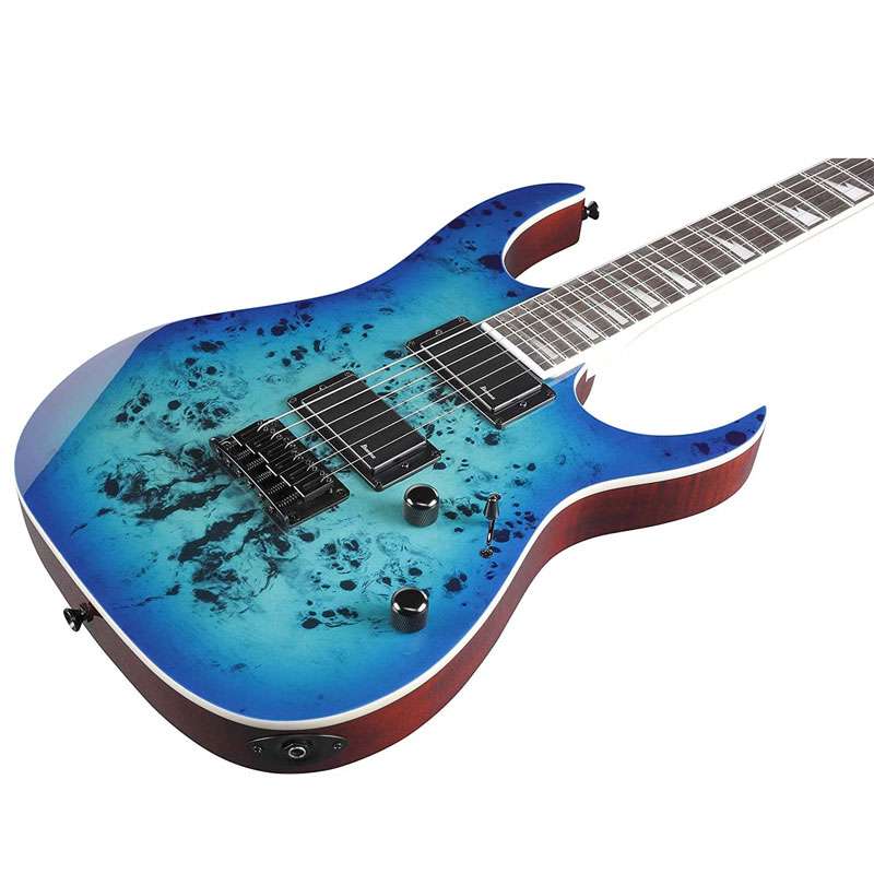 Ibanez GRG221PA-AQB električna gitara predstavlja vrhunac Gio serije Ibaneza. Dizajn, izrada, zvuk, i svirljivost u rangu profesionalnih instrumenata, po prihvatljivoj ceni. Trup od okoume sa topolonim topom, sa klasičnim RG konturama omogućava masivan, bogat ton, i prihvatljivu masu.