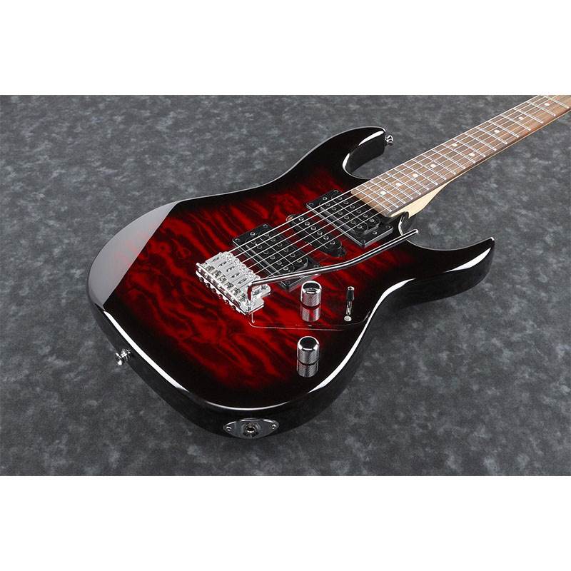Ibanez GRX70QA-TRB električna gitara je dragulj GIO serije. Po estetici, svestranosti, i odnosu uloženo-dobijeno teško da ima pravu konkurenciju u svom cenovnom rangu. Quilted maple top na trupu od topole, udoban vrat sa 22 praga, Ibanez T106 tremolo.