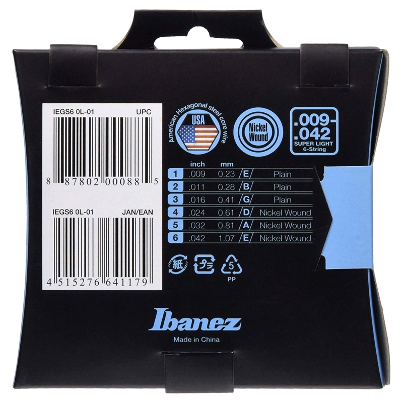 Ibanez IEGS6 žice za električnu gitaru - nickel wound, standardni super light set 9, 11, 16, 24, 32, 42.