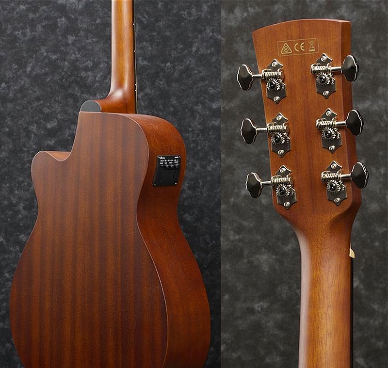The Okoume back and sides generate a woody, warm tone when the guitar is played softly or finger-picked and provide punchy high-mids with a clear projection when strummed.