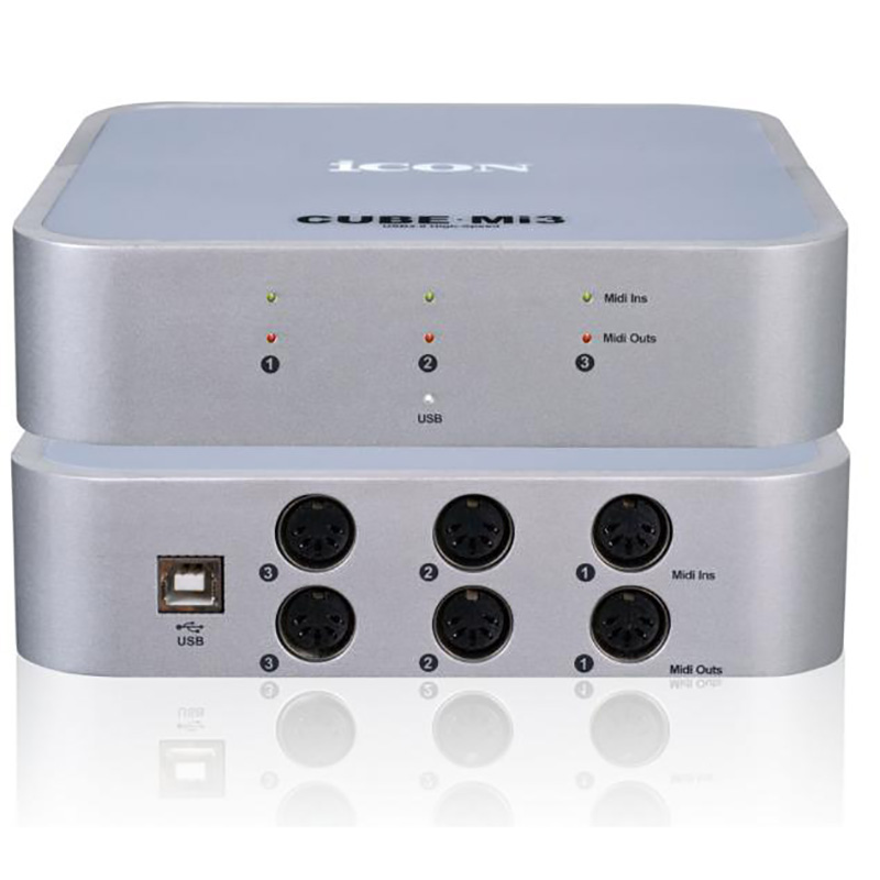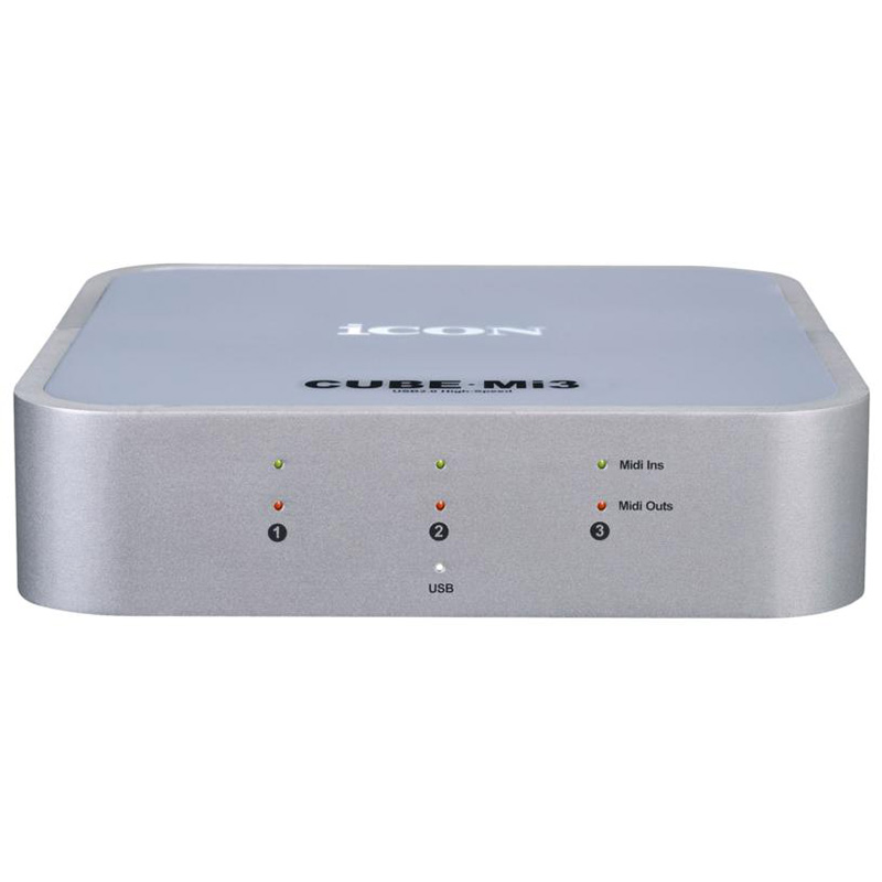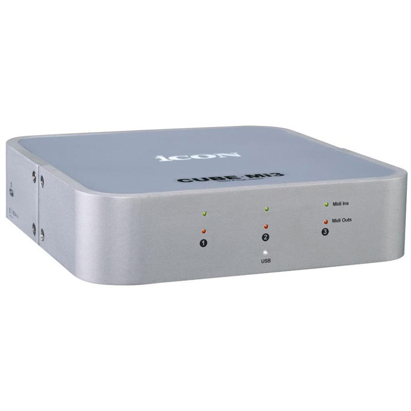 The Cube Mi3 from ICON Digital is a 3-in, 3-out MIDI interface with USB 2.0 connectivity for connecting keyboards, sequencers, modules and more to your computer. The device provides a total of 48 x 48 MIDI channels (16 channels per port) and features plug & play operation for Windows and Mac.