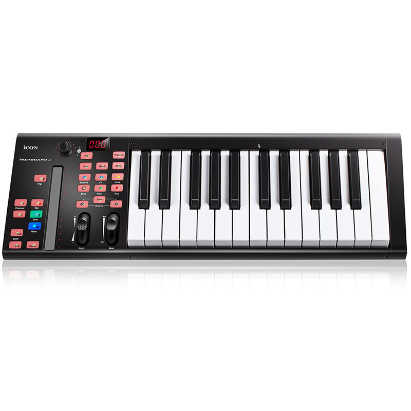 The Icon iKeyboard X Series combines 25 key piano keyboards with a single channel DAW controller in a rugged metal enclosure. Unlike many keyboard controllers with small plastic keys, this piano keyboard was specially designed by Icon with great attention to detail. The full sized keys are semi-weighted to provide realistic piano action. The controller also provides pitch bend and modulation wheels, and Octave and Transpose up/down buttons. The Icon iKeyboard X has all the controls you need right at your fingertips. The controller section features a touch fader with LED feedback to control and automate levels and other parameters, plus mute, solo, and rec buttons, with track and bank selection. The Backlit LED touch fader reacts in real-time with your DAW. It will synchronize automatically with different channel values when switching between channels.A full transport is provided for playback, recording, looping, and changing automation modes. The large rotary encoder with LED ring can be used for panning, setting send levels, controlling plugin parameters, and more. The Icon iKeyboard X comes bundled with Cubase LE and includes factory presets for most popular DAW’s including Cubase, Nuendo, Logic Pro, Pro Tools, Ableton Live, Samplitude and Studio One. Every control on the iKeyboard X can be custom-mapped to any MIDI application using the included iMap software. The iKeyboard X uses Mackie Control and HUI protocols for presets and automatic mapping, and can be configured for general MIDI values as well.