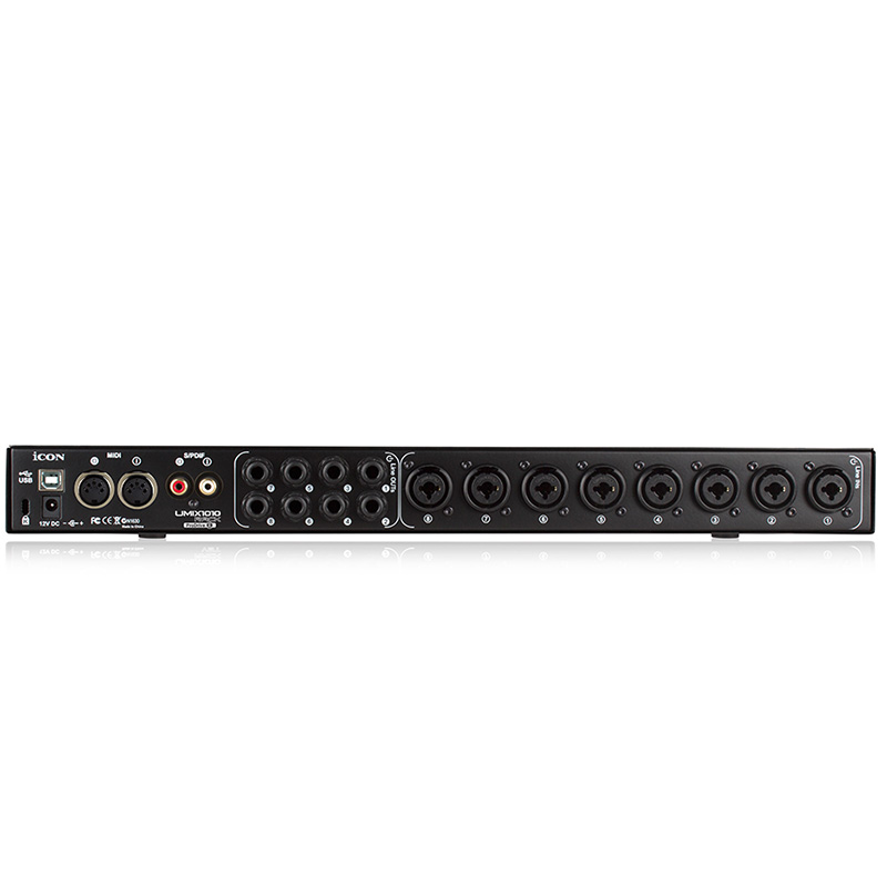 The UMix 1010 (ProDrive III) rack mountable USB 2.0 audio interface provides10 Inputs and 10 Outputs of high quality 24-bit 96/192khz analog/digital conversion. Superior build quality is the Icon hallmark, as demonstrated by the punch and clarity of the 8 mic/instrument preamps, each with individual phantom power. Plus the UMix 1010 comes complete with ProDrive III, our innovative plug-in host and virtual signal router. Run it in standalone mode or with your favorite DAW. Pull up your guitar modeling ProDrive III and play, or plug in your midi controller without running through your DAW. We also added a suite of music production plug-ins for advanced processing. The Umix 1010 audio interface, is a powerful, but flexible workhorse for your digital studio.