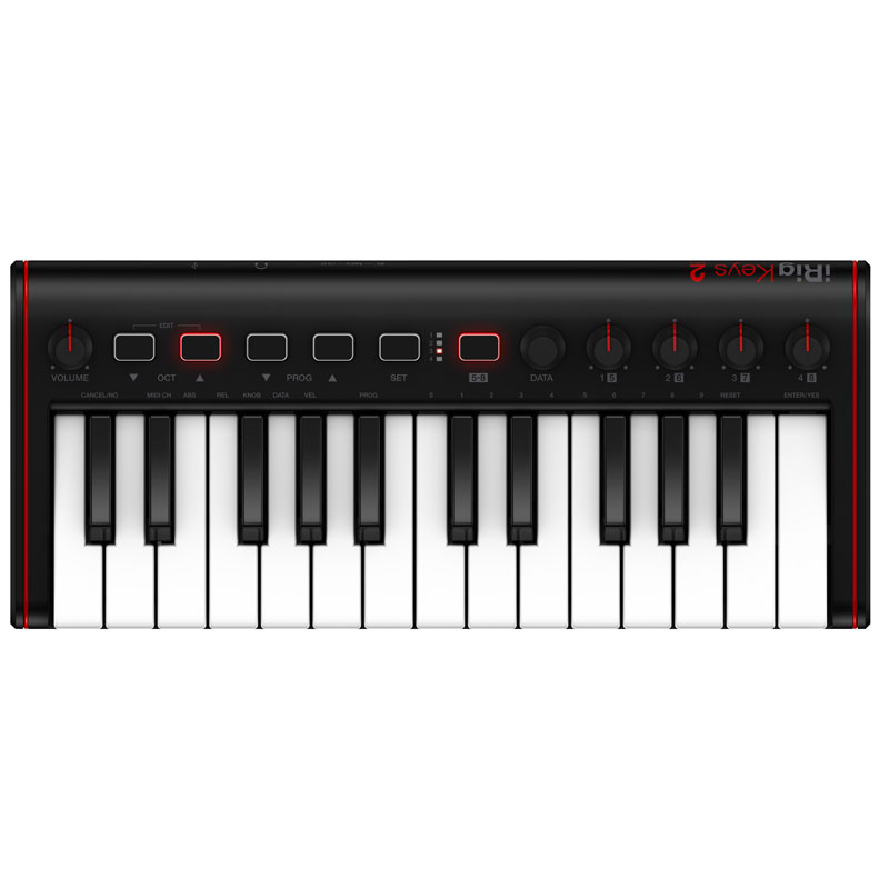 IK Multimedia iRig Keys 2 Mini MIDI controller. iRig Keys 2 gives you more ways to connect & control all of your gear, in any situation. With improved compatibility for the latest mobile devices. Full MIDI input and output, multiple power options. Stocked software bundle and a stylish new look, these new and improved controllers are ready to play when you are.