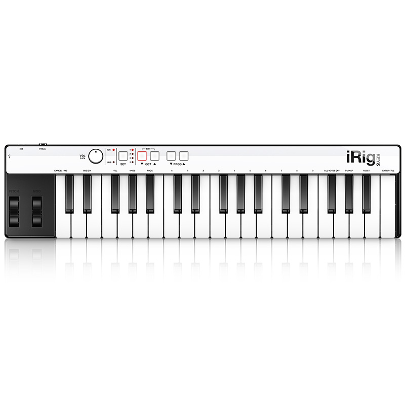 iRig Keys is the first ultra-slim and highly portable universal MIDI controller keyboard for iPhone, iPad, iPod touch, Android and Mac/PC. iRig Keys connects directly to your iOS device via the included lightning connector, to your Android device via the included OTG to Micro-USB cable and to your Mac/PC via the included USB cable. It can also connect to older iOS devices via an optional 30-pin cable. It features 37 velocity-sensitive mini-keys — a full 3-octave range plus one note — takes up minimal space on your desktop and can easily fit in a backpack or a carry-on bag.