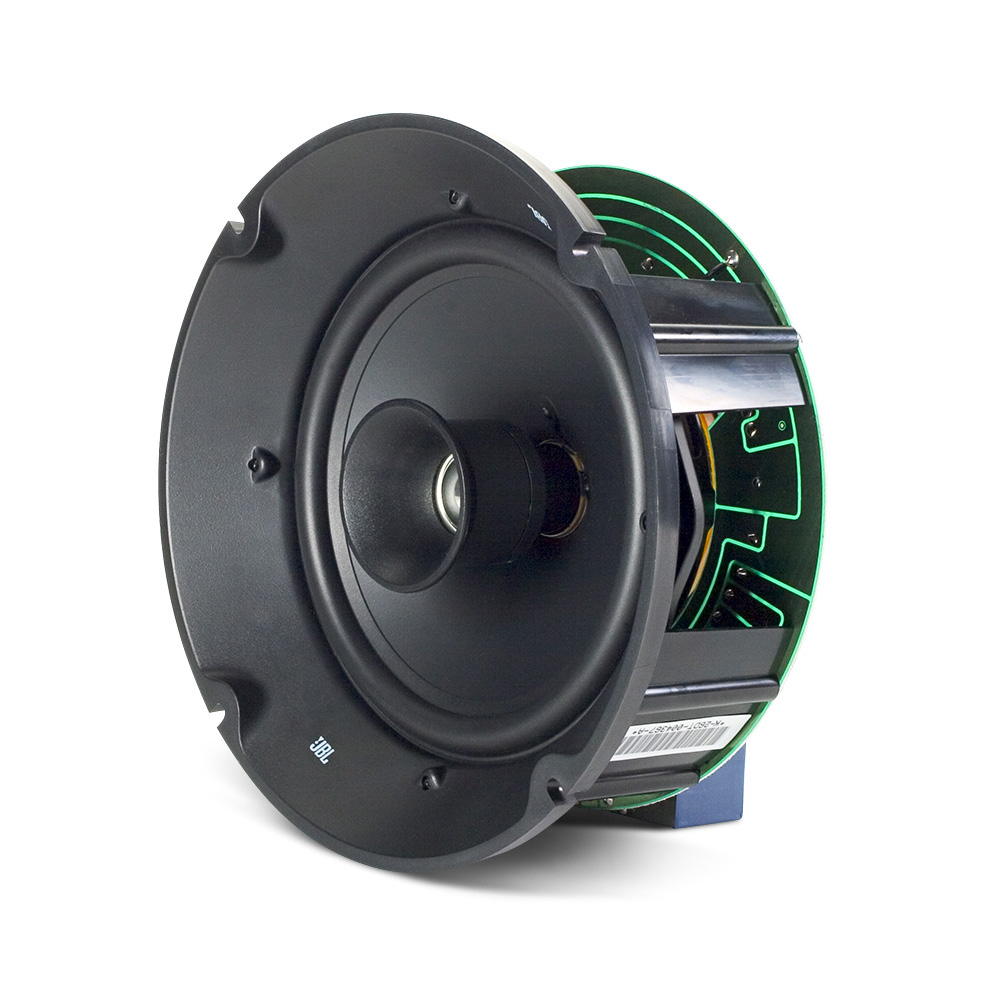 The Control 26-DT is a compact ceiling speaker assembly configured to install into standard ceiling backcans designed for 200 mm (8") drivers.