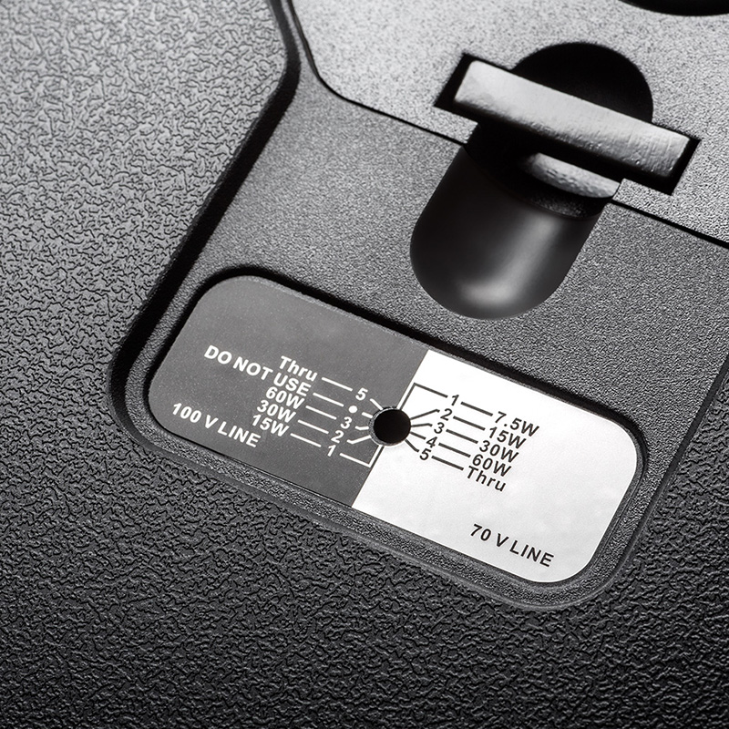- Transformer Taps 70V: 60W, 30W, 15W, 7.5W, 100V: 60W, 30W, 15W