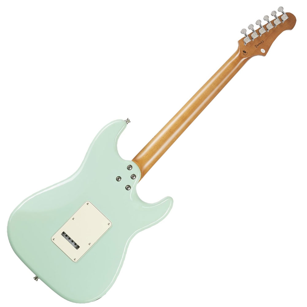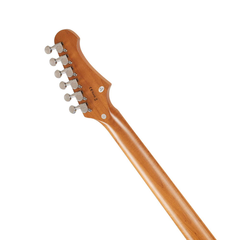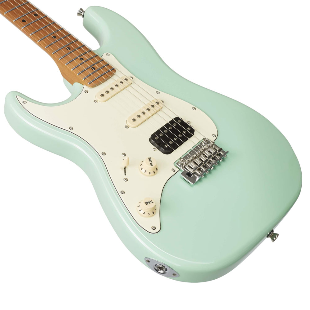 - Javorov vrat sa 22 praga, i udobnim, modernim C profilom umerene debljine. Moderni 2-point tremolo, moćan humbucker, i dva kristalno jasna keramička single coil magneta zaokružuju paket. Veoma svirljiv instrument, idealan za sigurne prve korake na električnoj gitari. Topla preporuka za učenike i hobiste svih uzrasta.