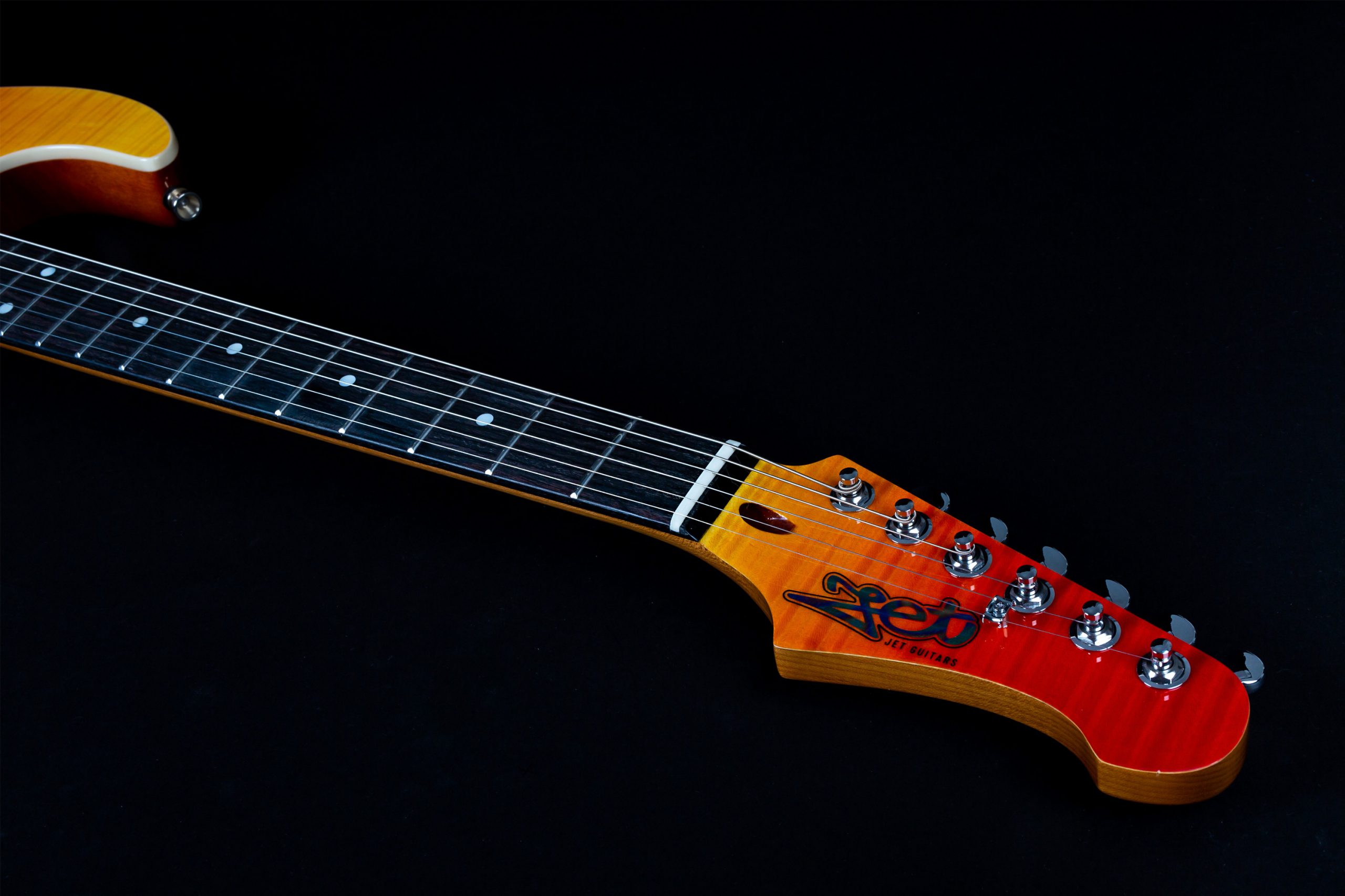 JET JS-600 TRS električna gitara nudi neverovatnu vrednost za novac. Luksuzan trup od mahagonija sa topom od rebrastog javora, u HSS fat-strat konfiguraciji. Javorov vrat sa 22 praga, i udobnim, modernim C profilom umerene debljine.