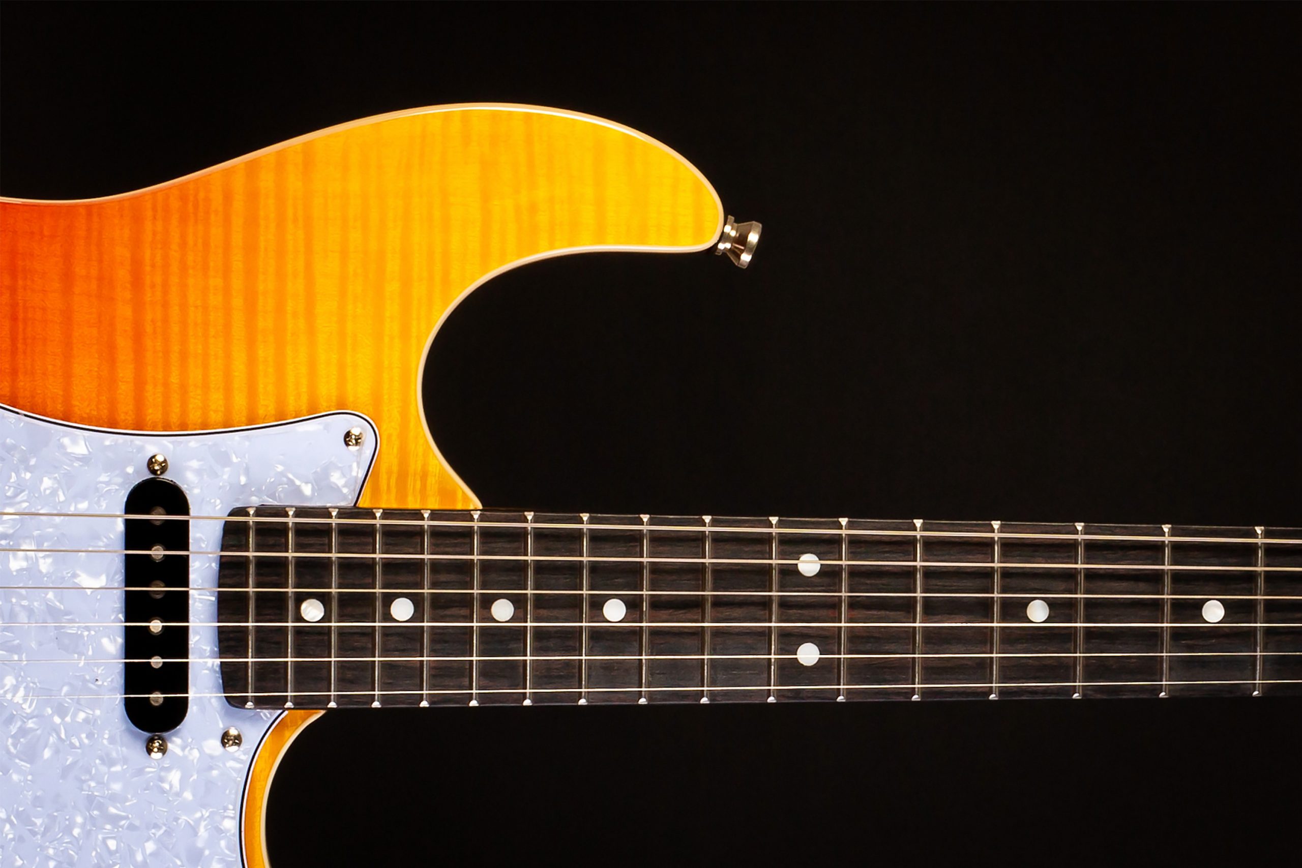 - Vrat od pečenog javora. Moderni 2-point tremolo, moćan humbucker, i dva kristalno jasna keramička single coil magneta,kao i hromirane locking čivije zaokružuju paket. Veoma svirljiv instrument, idealan za iskusnije učenike i hobiste ali i kao back-up instrument za profesionalce. Topla preporuka.