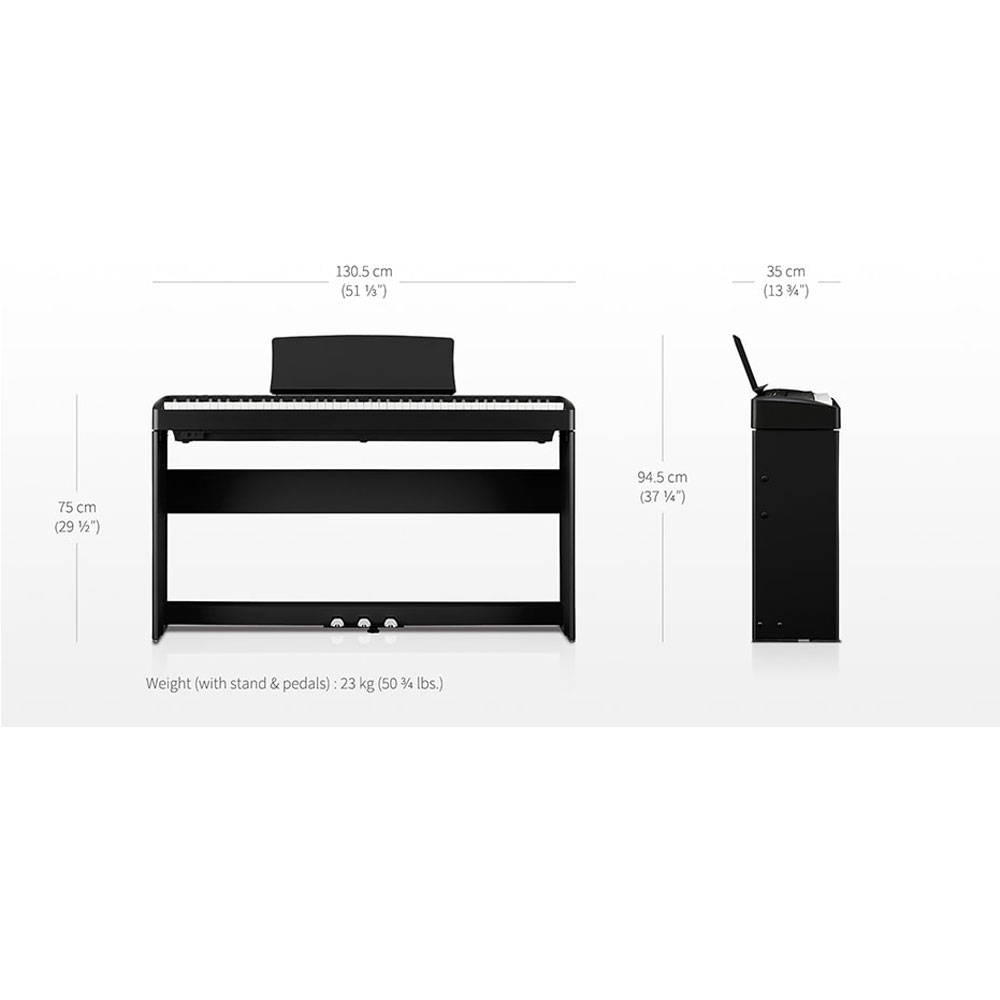 - Uz klavir se dobija jedna F-1SP pedala ali ukoliko želite ovaj klavir možete proširiti dodatnom kupovinom HML-2 drvenog stalka, ili F-351 modulom sa tri pedale. Klavir je dostupan u crnoj ili beloj boji. Izuzetan klavir za svakog svirača po neverovatnoj ceni.