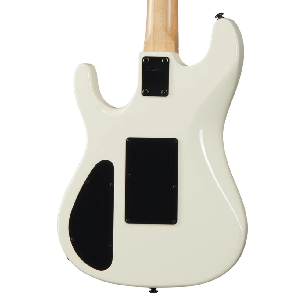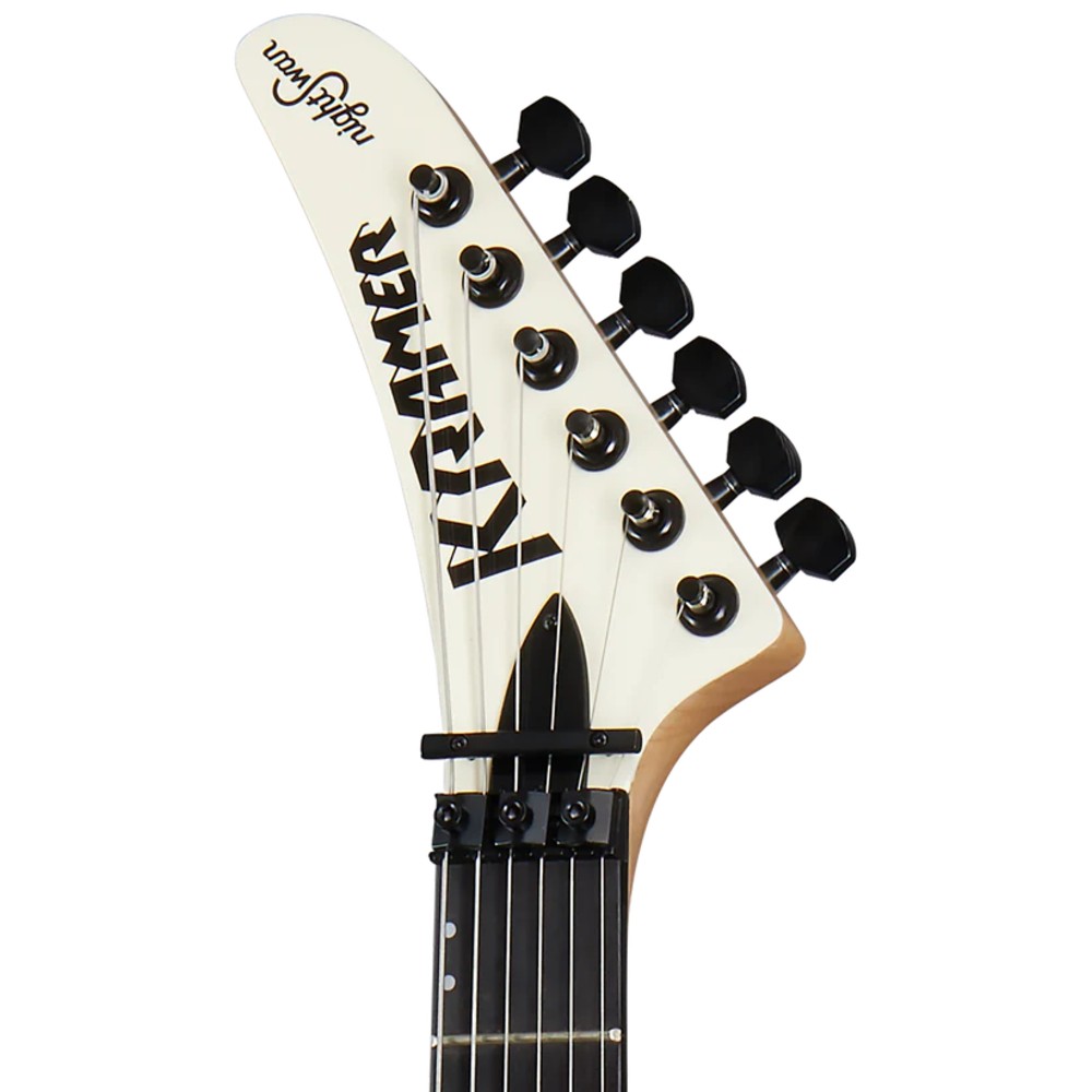 Legendarni šred sled iz kasnih 80-ih vraća se u Kramerovu liniju. Sa telom od mahagonija sa dvostrukim izrezom i duboko isečenim donjim hornom za izuzetan pristup gornjim pragovima, NightSwan™ pokreću dva Seymour Duncan® JB™ hambakerska pikapa i spreman je za duboke zamahe i padove sa svojim Floyd Rose® 1000 Series tremolom i R2 zaključavajućim navrtkom. Držica od ebanovine ima radijus 16" i ima 24 džambo praga i intarzije sa bisernim tačkama „ping pong“, dok je poleđina tankog, trodelnog tvrdog javorovog vrata u obliku slova C satenski završena, što ga čini savršenim za munjevito brze sviranje. Ovaj „Swan“ je završen u Vintage White boji sa retkom i veoma poželjnom Aztec grafikom. Dostupna je opciona tvrda futrola.