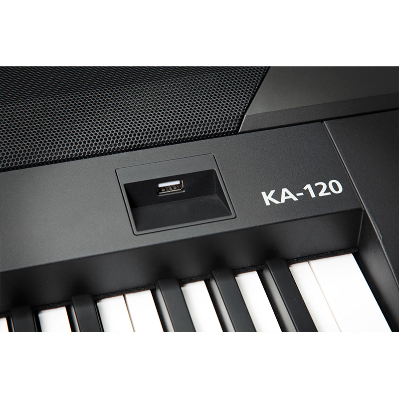 Kurzweil KA-120 električni klavir je prenosiva klavijatura sa 88 otežanih dirki sa podesivim nivoima osetljivosti (4 nivoa). KA-120 je odličan izbor za pijaniste kojima je potrebna klavijatura pune veličine. Ovaj električni klavir poseduje preko 600 ugrađenih boja i zvukova, poput klavira, orgulja, gitara, stringova itd. Takođe, KA-120 poseduje 230 pratećih stilova, kao i midi snimač koji Vam omogućava da snimite do 5 pesama. Inovativni Performance Assistant Vam pomaže prilikom sviranja gitarskih i klavirskih fraza koje pokrećete sviranjem nekoliko dirki. Ove brojne opcije su upakovane u atraktivno kućište sa odvojivim stalkom za note i ugrađenim zvučnim sistemom sa 4 zvučnika.