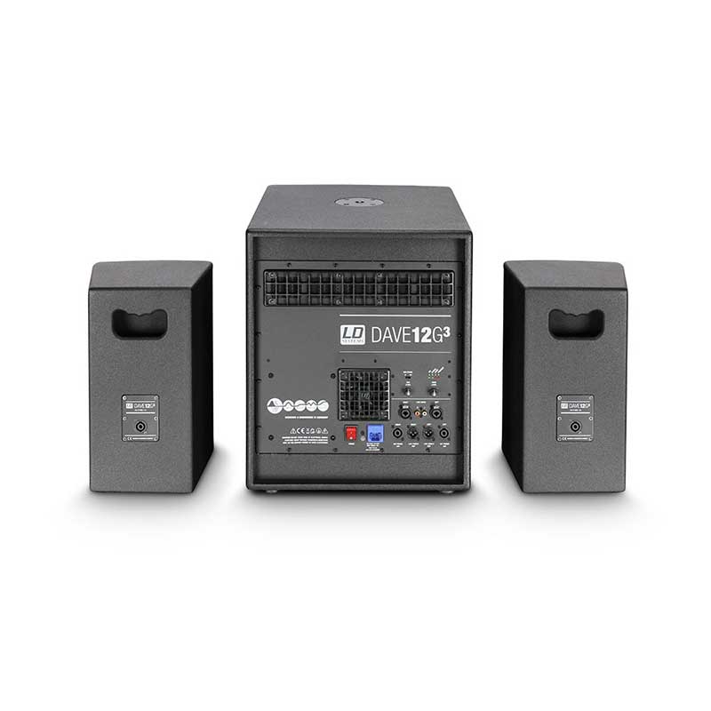 - Sa DAVE 12 G4X, vaša potraga je završena. LD Systems je potpuno redizajnirao i fino podesio aktivni 2.1 zvučni sistem. Sve što treba da uradite je da podesite 12" sabvufer i dva satelita sa duplim 6.5" zvučnicima (ukupna snaga: 1460 W pik) i povežete opremu - i zvuk će vas oduševiti od samog početka! Sa integrisanim 6-kanalnim mikserom, imate sve svoje mikrofone, instrumente i signale pod kontrolom - i, zahvaljujući integrisanom Bluetooth-u, možete bežično strimovati muziku putem pametnog telefona ili tableta.