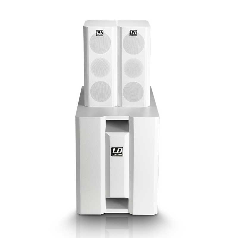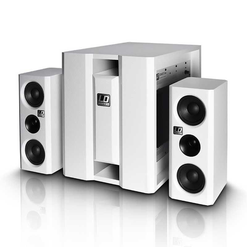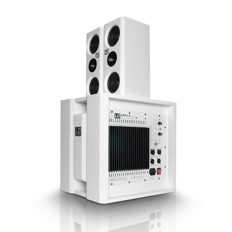 LD systems DAVE 8 XS W sistem je aktivni potrabl u beloj boji 2.1 sistem za razglas visokih performansi. Sistem sadrži jedan subwoofer sa zvučnikom veličine 8" i satelitima odkojih svaki sadrži po dva zvučnika od 4". Kao i jedan visokotonski zvučnik od 1".