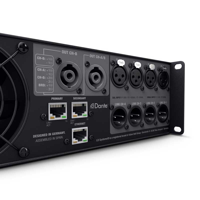 - Features: Computer control software, Ethernet, Dante interface, 19" / 2 U, Active Power Factor Correction, DSP controlled, USB front port, LD Systems loudspeaker preset library