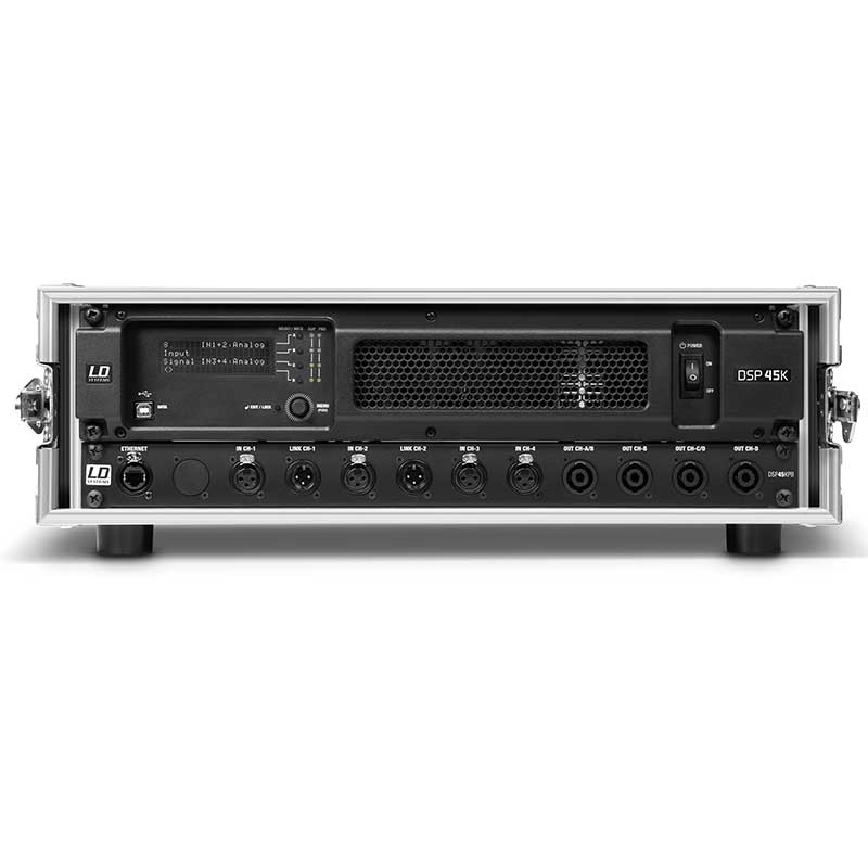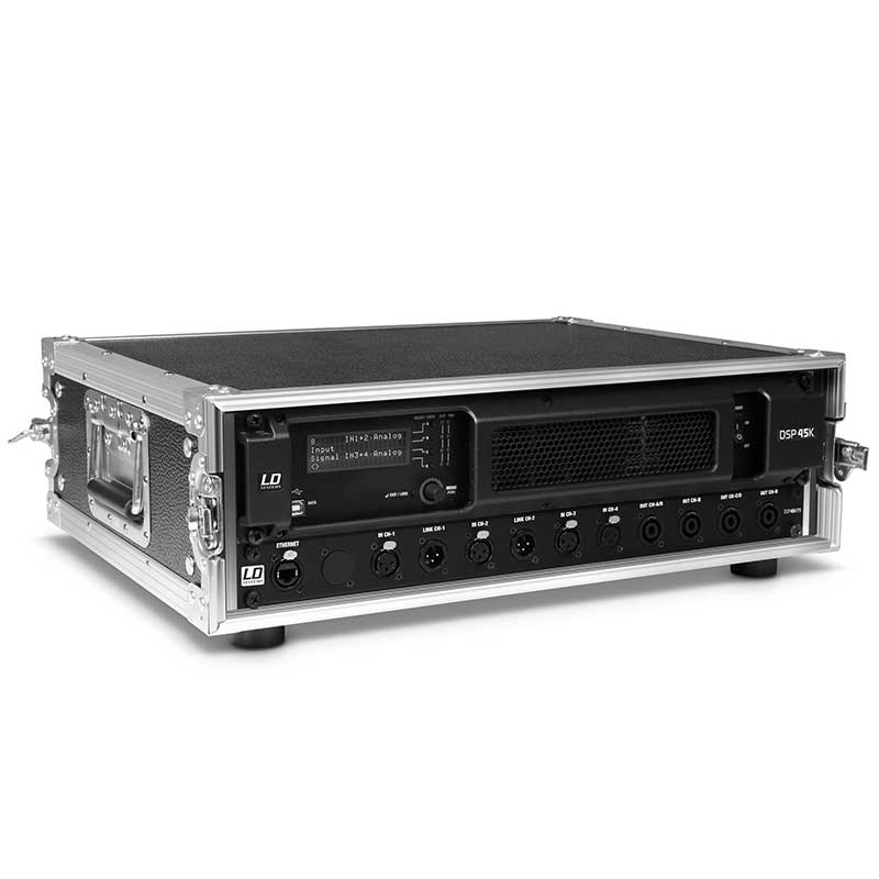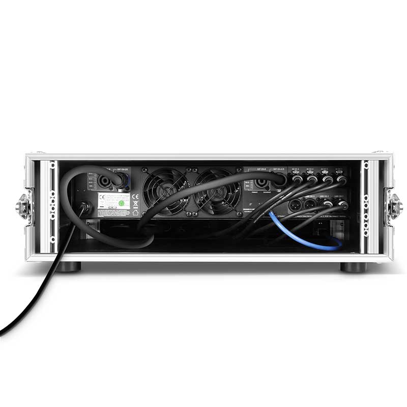 This ready-to-use 3 U amp rack comes with LD Systems' DSP 45K power amplifier pre-wired to a patchbay providing convenient front panel input and output access. The rugged case with front and rear lids is made of 7 mm plywood with black film face and high-quality hardware. Delivering 4 x 1,200 watts into 4 and 2 ohms, the amp features 24-bit signal processing and includes a preset library making it the perfect engine to power passive LD Systems loudspeakers such as Stinger® series models.