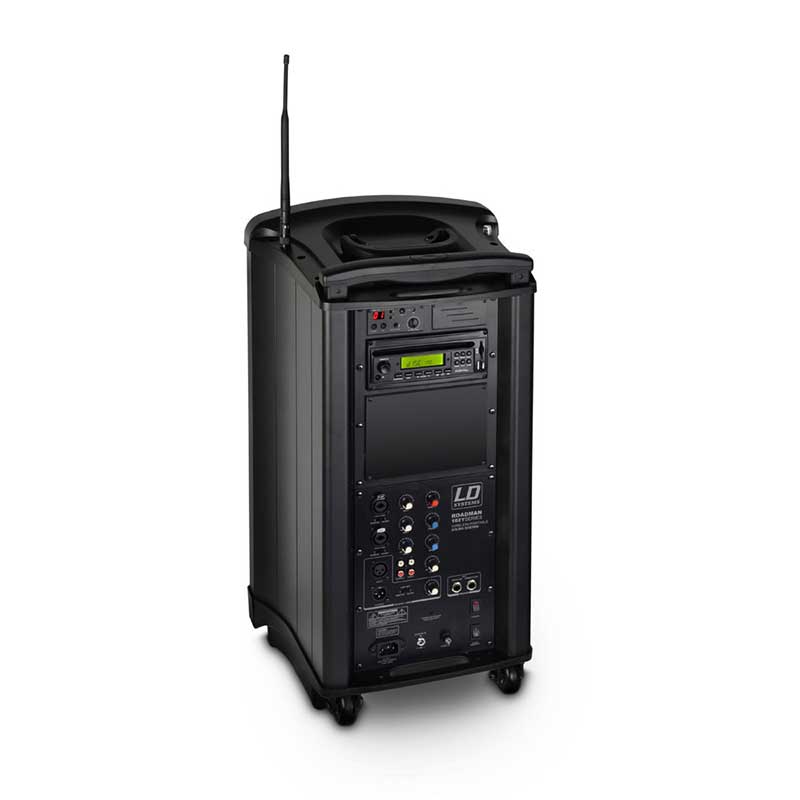 The LD Systems Roadman 102 HS is a mobile and compact sound system with headset. The Roadman 102 HS is a compact and mobile PA solution with integrated battery. This system is perfectly suitable for solo entertainers, churches, schools, business conferences or presentations where versatility is required. The Roadman comes with a CD/MP3/USB/SD Player as well as a wireless microphone unit with headset and beltpack . A second wireless microphone unit are also available in option.