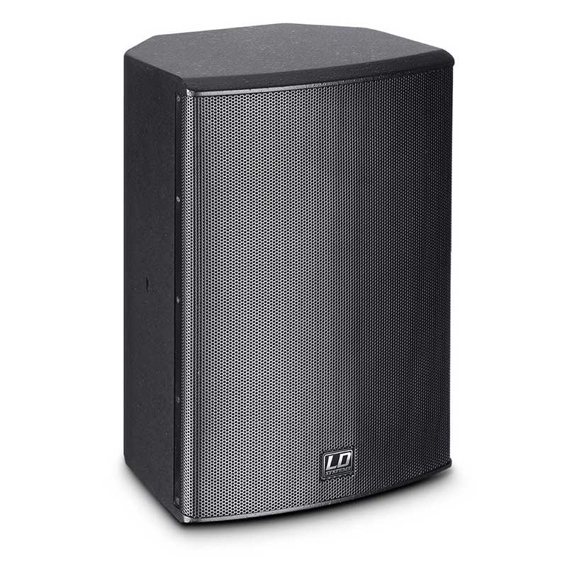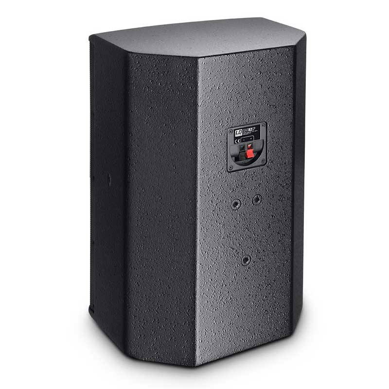 The LD Systems SAT82G2 is a compact, especially dependable 2-way speaker for demanding installation solutions. It blends unobtrusively into practically any surroundings and thus is also suitable for home systems. The bass-reflex design is loaded with an 8" custom woofer and a 1“ silk dome tweeter with wave guide, which permit powerful and extremely dynamic reproduction within a range of 50 Hz - 20 kHz with a dispersion angle of 60° and attain a maximum sound- level pressure of 114 dB. The LD SAT82G2 is rated for a RMS power load of 120 W. The sturdy cabinet is made of 12mm MDF with a durable textured finish and is available in black and white. M6 rigging points and an included mounting bracket provide numerous possibilities for mounting. Additionally, a universal joint mount is available as an accessory. The SAT82G2 has spring terminal connectors.