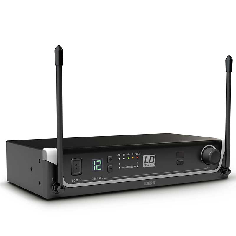 Developed in Germany, the UHF Diversity wireless systems from the U300 series deliver excellent audio performance. They achieve a range of 100 metres in ideal conditions and are available in 5 frequency bands: 584 MHz - 608 MHz, 655 MHz - 679 MHz, 823 MHz - 832 MHz + 863 MHz - 865 MHz, 470 MHz - 490 MHz or 514 MHz - 542 MHz. Six U300 systems can be used simultaneously for each frequency band. Convenient one-touch synchronisation via infrared ensures fast, problem-free wireless connection between the transmitter and receiver, while a squelch with pilot tone ensures disruption-free operation. U300 transmitters have a 10 mW output and an operating time of 10 hours on two AA batteries. The handheld microphone’s frequency response ranges from 55 Hz to 16 kHz. With a lower cut-off frequency of 25 Hz, the bodypack is also suitable for transmitting 5-string bass guitars with a deep H string. The bodypack’s input level can be adjusted to both active and passive guitars and basses over three levels. The power switch features a handy standby mode for temporary muting. The U300 receiver is fitted with a bright LCD channel display, an LED chain for displaying audio signal strength and both a balanced XLR and an unbalanced 6.35 mm audio output. The audio output can also be switched to instrument level for directly connecting to guitar and bass amplifiers. U300 series wireless systems feature a fresh, modern design and are available as vocal sets with receiver and dynamic handheld microphone with cardioid characteristic, bodypack and headset or bodypack and lavalier microphone. The microphone characteristic can be changed using U500 series replaceable heads. U300 instrument sets are available with bodypack and clip-on microphone for wind instruments or a double-shielded low-capacitance cable for guitars and basses.