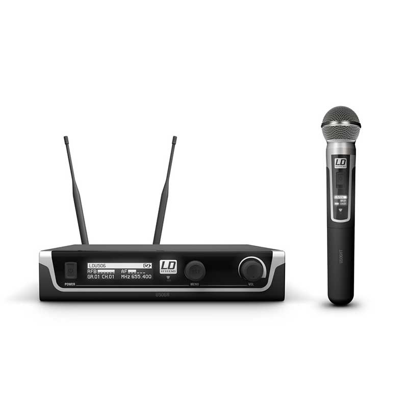 LD Systems U506 HHD je bežični mikrofon dizajniran u Nemačkoj. Izuzetno pouzdan sistem kvalitetne izrade i kvalitetnog tona. Opseg mikrofona je dizajniran posebno za profesionalnu upotrebu. Domet mikrofona je 100 metara. Frekvencija prenosa je u opsegu od 655 do 679 MHz. Sinhronizacija mikrofona i base se obavlja automatskim skeniranjem ili infracrvenom konekcijom. Niska potrošnja garantuje dug rad mikrofona.