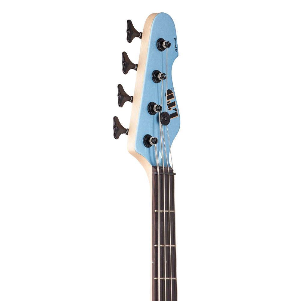 LTD AP-4 Pelham Blue bas gitara poseduje klasični izgled AP Serije basova. Proizedena je sa bolt-on maple vratom, dužine 34" i grifom of macassar ebony-a. Telo klasičnog oblika je načinjeno od jove. Potrebno je istaći i izuzetno kvalitetan hardware: Babicz bridž i Grover čivije. Fenomenalni EMG magneti omogućavaju prepoznatljivi ton koji se i očekuje od ovakvog instrumenta, uz odličan odnos snage i odziva.