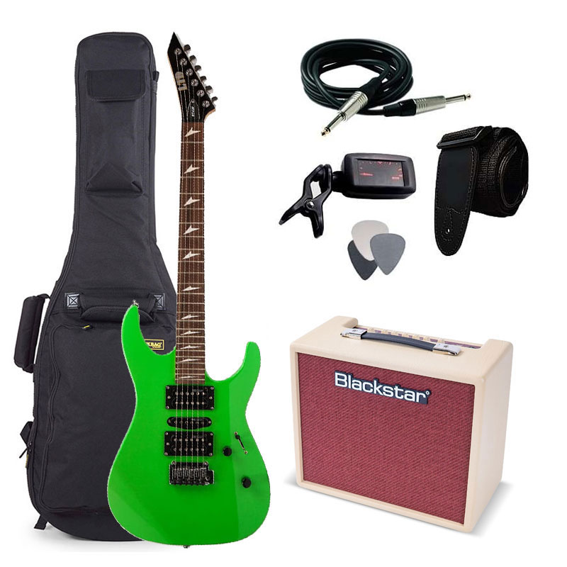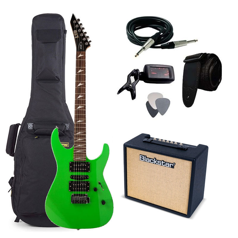 LTD MT-130 GREEN Debut 30 paket je prava opcija za svirače svih uzrasta. Izuzetno kvalitetna gitara, odlično pojačalo, i adekvatna prateća oprema, po umerenoj ceni. ZVUK KOJI REŽE!