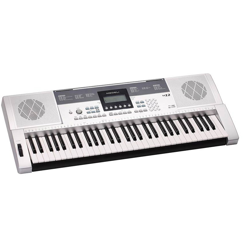 Medeli M12 klavijatura poseduje 61 dinamičku dirku, pune veličine, 320 zvukova, 100 ritmova i 100 pesama. Takođe, klavijatura poseduje LCD-displej koji olakšava korišćenje. Ovaj model poseduje USB ulaz koja omogućava povezivanje sa računarom.