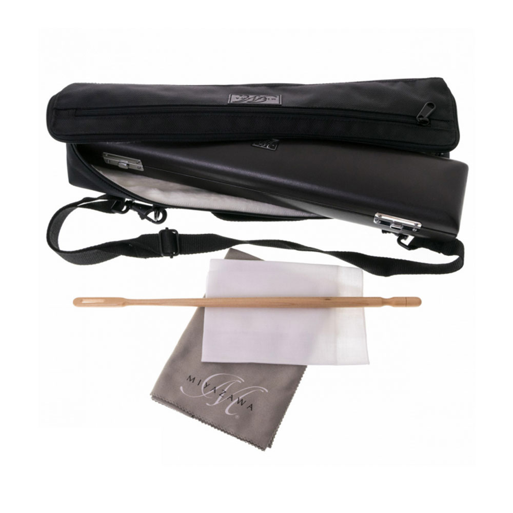 - Miyazawa 402 je srebrna flauta sa posrebrenim mehanizmom, otvorenim klapnama, Offset G postavkom mehanizma, E mehanikom i H nogom.