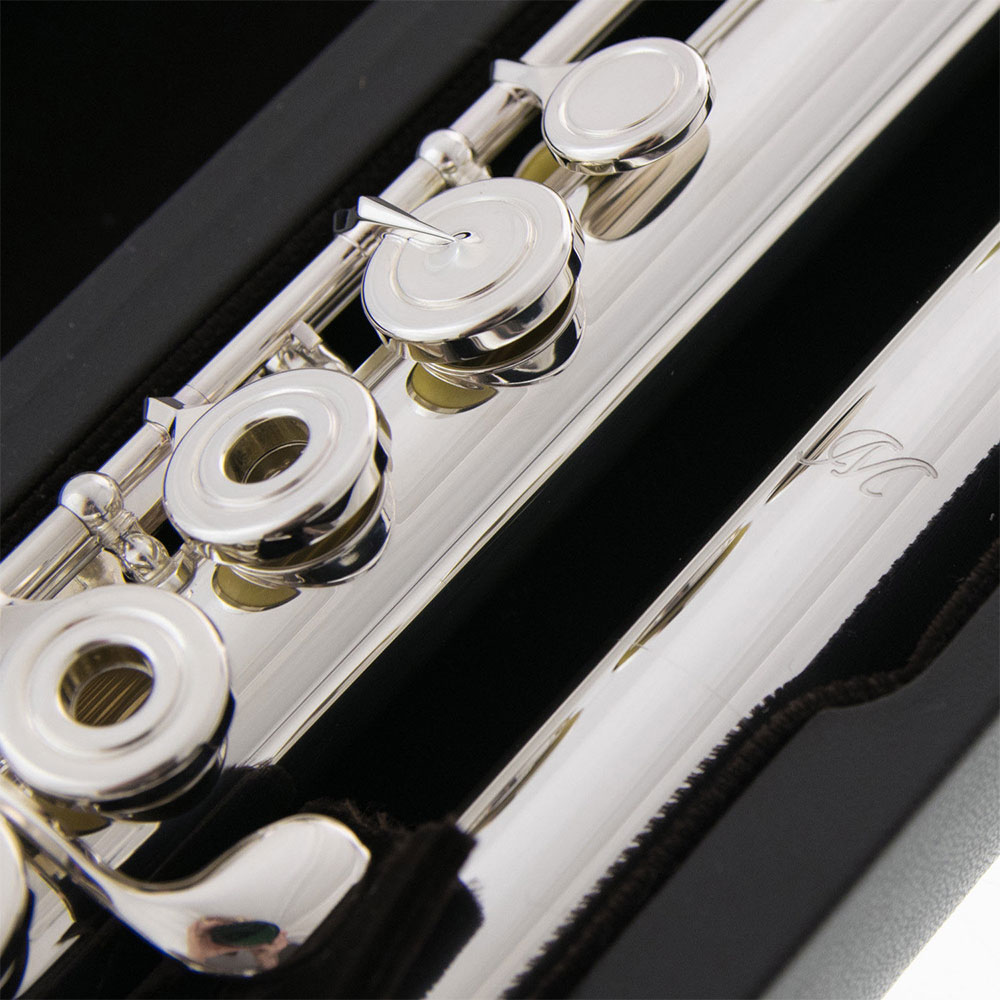 - Svaka Miyazawa flauta je fuzija tradicionalnih vrednosti i neverovatnih savremenih dostignuća. Model 602 je flauta sa glavom, telom i nogom od Britanija (.958) srebra, posrebrenim mehanizmom, otvorenim klapnama, Offset G postavkom mehanizma, E mehanikom i H nogom.