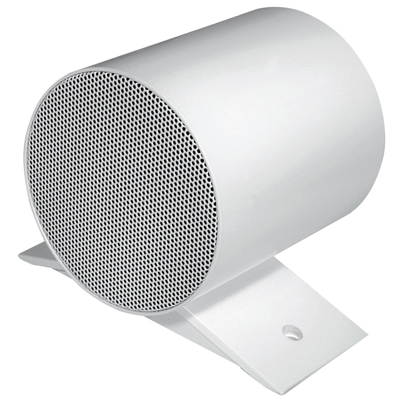The sound projector with a power capacity of 10 W is fitted with two 13 cm full range speakers and a 100 V transformer with 4 power taps. A robust plastic-coated aluminium housing in RAL9010 and a vandal-resistant aluminium mounting plate ensure a permanent installation of this speaker. The 2-pole ceramic terminal and thermal fuse as well as the waterproof speaker ensure extra operating reliability.