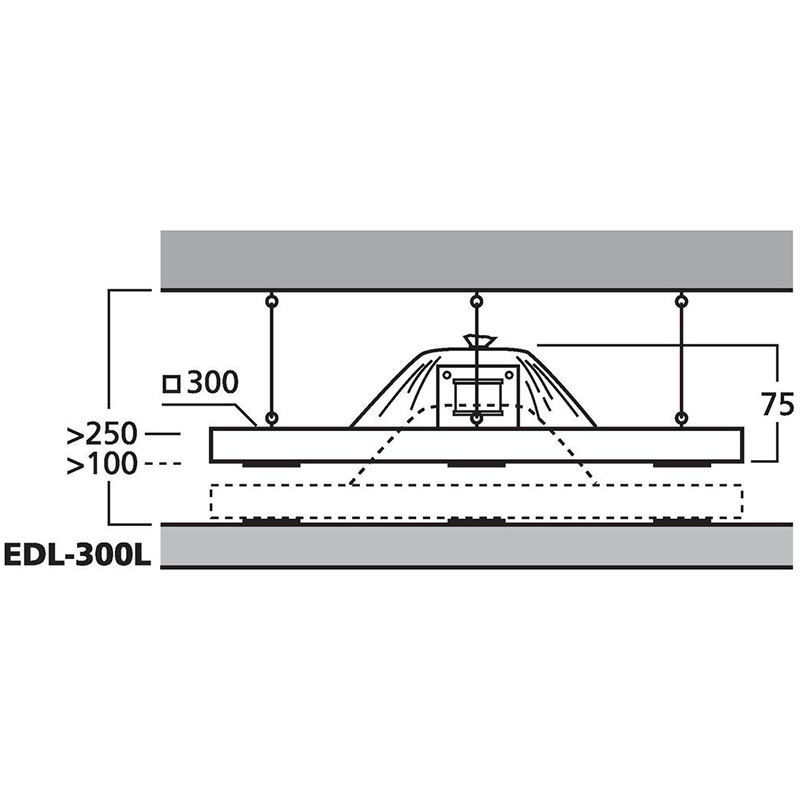- Dimensions: 300 mm x 300 mm, required clearance above the ceiling when resting the speaker directly on the grid: > 10 cm, when suspending it above the ceiling: > 25 cm