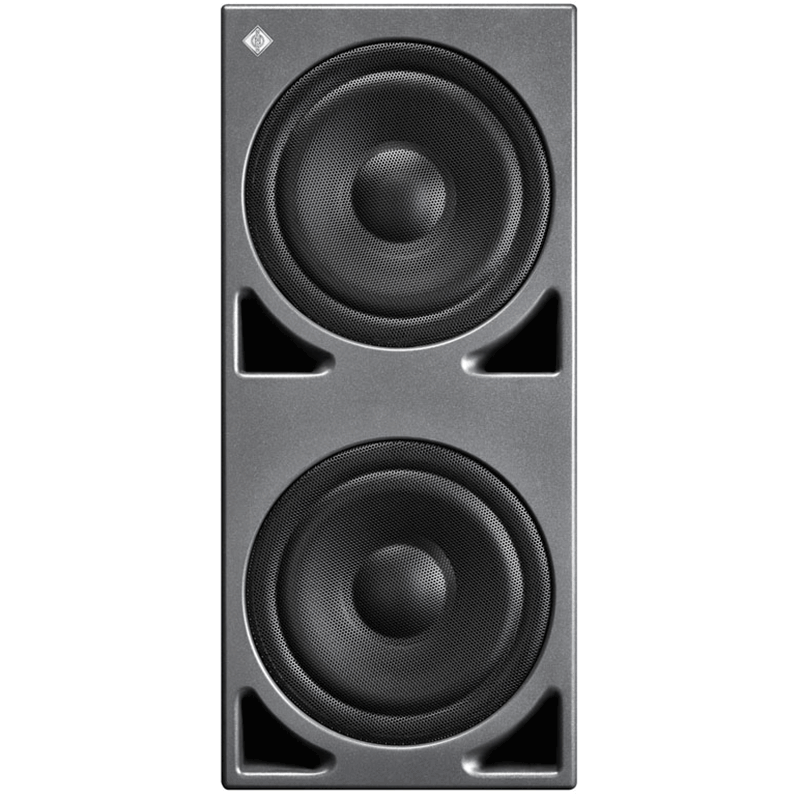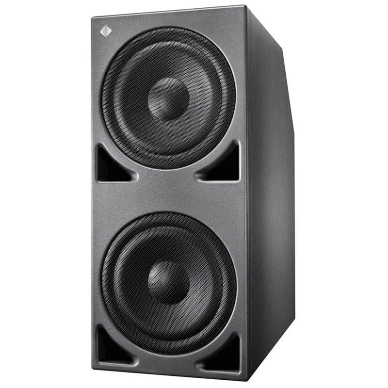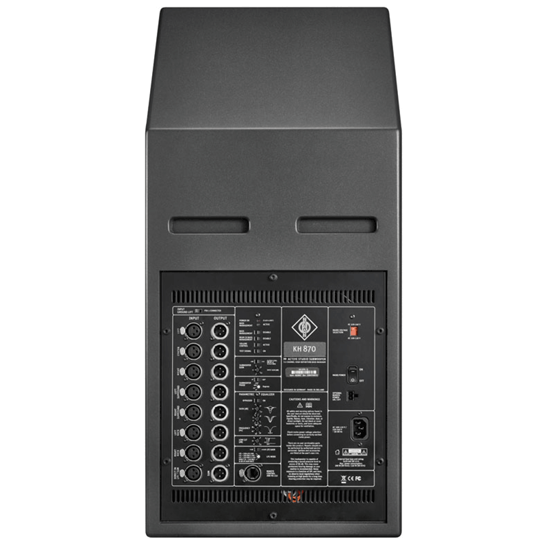 The KH 870 is an answer to the demands by offering a 7.1 High Definition Bass Manager™. The flexibility of this bypassable 7.1 bass manager means it is also compatible with all standard consumer formats from mono through to the latest 7.1 HD systems. Eight channels of analog ensures flexible interconnectivity for modern studios. Four-mode LFE-channel processing guarantees compatibility across all formats and industries. Forth-order crossovers and flexible acoustical controls allow for seamless system integration. Built-in volume control and a hardware remote control allows for centralized system control independent of the source, and the electronics can be remote located to reduce cabling. From Mono to 3D, there are uses for the KH 870 in many different system configurations. The latest amplifier technology and acoustical components have been used to ensure the most accurate sound reproduction possible. Robust drivers, a rock-solid cabinet, and carefully designed ports guarantee a tight, articulate, and distortion-free low frequency reproduction, even at high replay levels. Using the sum output, Plane Wave Bass Array™ (PWBA™) techniques acoustically improves lateral consistency in the listening area. The bass extends down to 18 Hz. The KH 870 subwoofer is designed to complement Neumann's extensive range of monitors, and can be used on its own, or daisy-chained to make larger systems capable of higher SPL. The KH 810 can be used in music, broadcast, and post production studios for tracking, mixing, and mastering. The cabinet can be positioned next to a wall or flush mounted into a wall due to the front mounted port, and can be mixed freely in multichannel systems with other loudspeakers from Neumann's range.