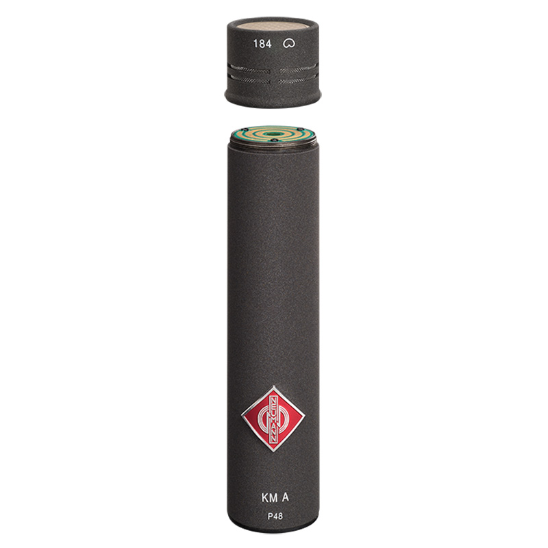 The combination of the capsule KK 184 with the output stage KM A is only one of the numerous options within the Neumann KM A/D small diaphragm microphone system. The Neumann system KM A/D is a modular microphone system for even the most demanding applications. Eight different small diaphragm capsules (KK 120 … KK 185) may be combined with either an analog output stage (KM A) or a digital AES 42 output stage (KM D). All components are available in nickel or Nextel black (nx). A comprehensive range of accessories ensures adaptability to the most diverse fields of application. Compared to its predecessor, the Series KM 100, the new system KM A/D works with passive capsules, which are considerably smaller while retaining the proven acoustic design. New and advanced electronic components allow for many electroacoustic and operational advantages, such as reduced self-noise, an extended dynamic range, and very high electromagnetic immunity. The modular concept permits the capsule to be detached and used at a distance from the output stage of up to 100 m (330 ft), connected via a special cable. For usual applications, the LC 4 cable is available with a length of 5 or 10 meters (ca. 16½ or 33 ft.). Alternatively, capsule extensions of various lengths, swivel capsule joints, and swivel stand mounts, etc. may be used for a flexible microphone setup. The analog and digital output stages have identical dimensions (diameter: 22 mm, length: 93 mm). All accessory parts may thus be combined with both output stages.
